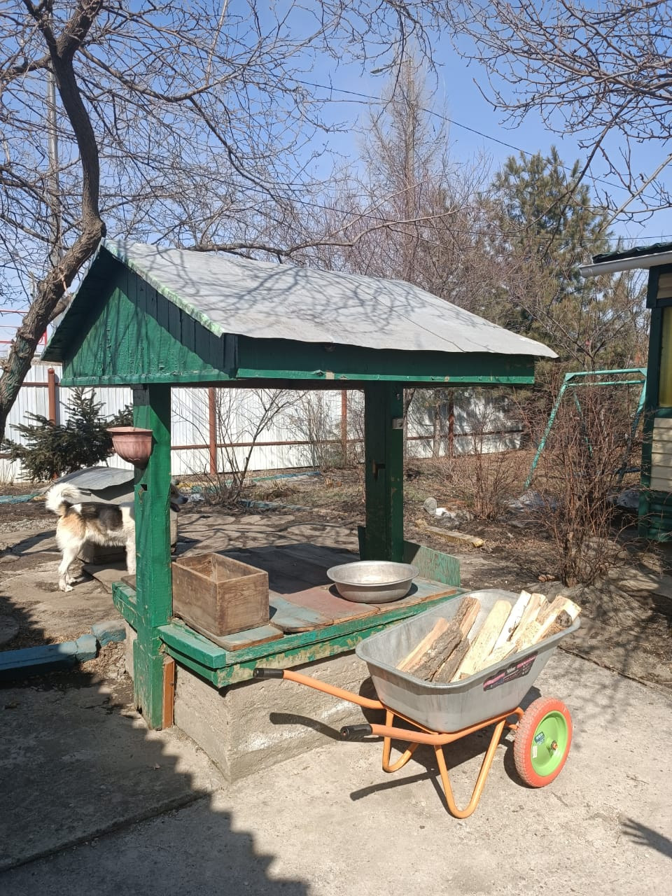 На территории  строения- сарай, дровенник, гараж из кирпича,3 погреба, 2 теплицы, колодец во дворе.