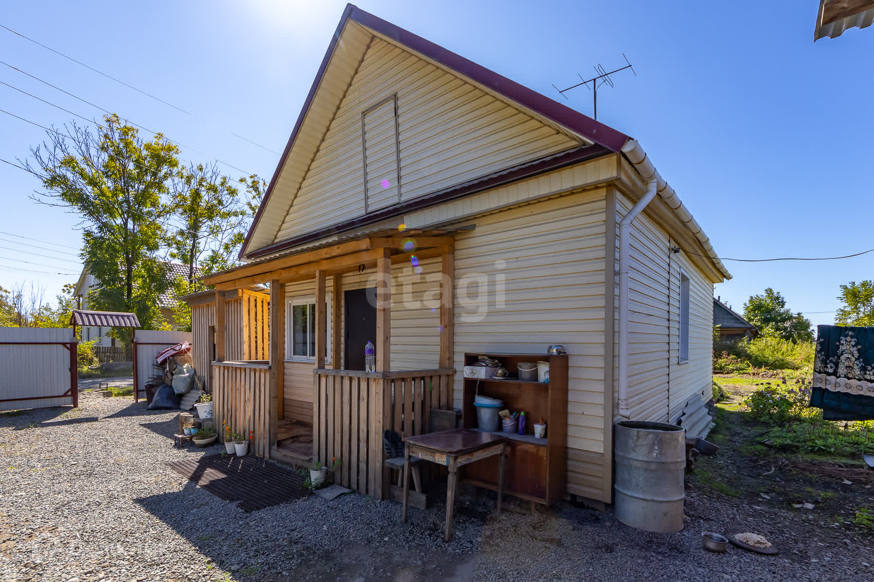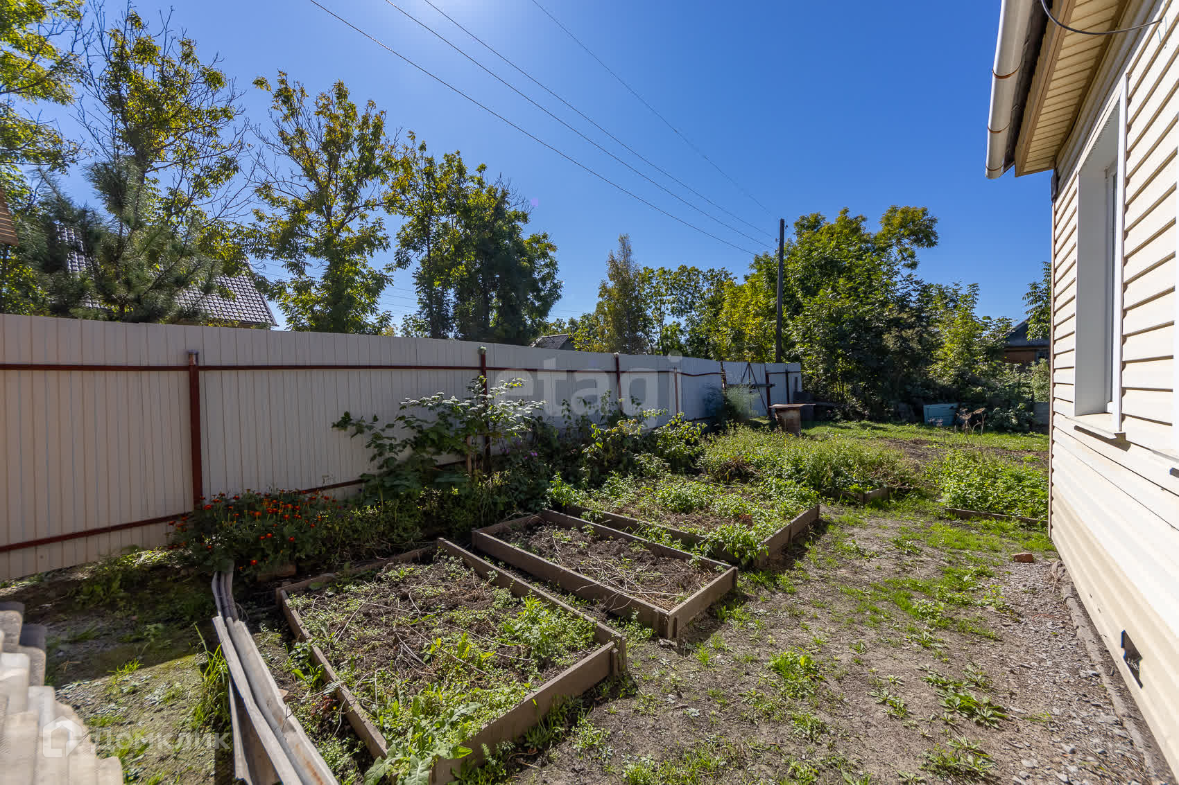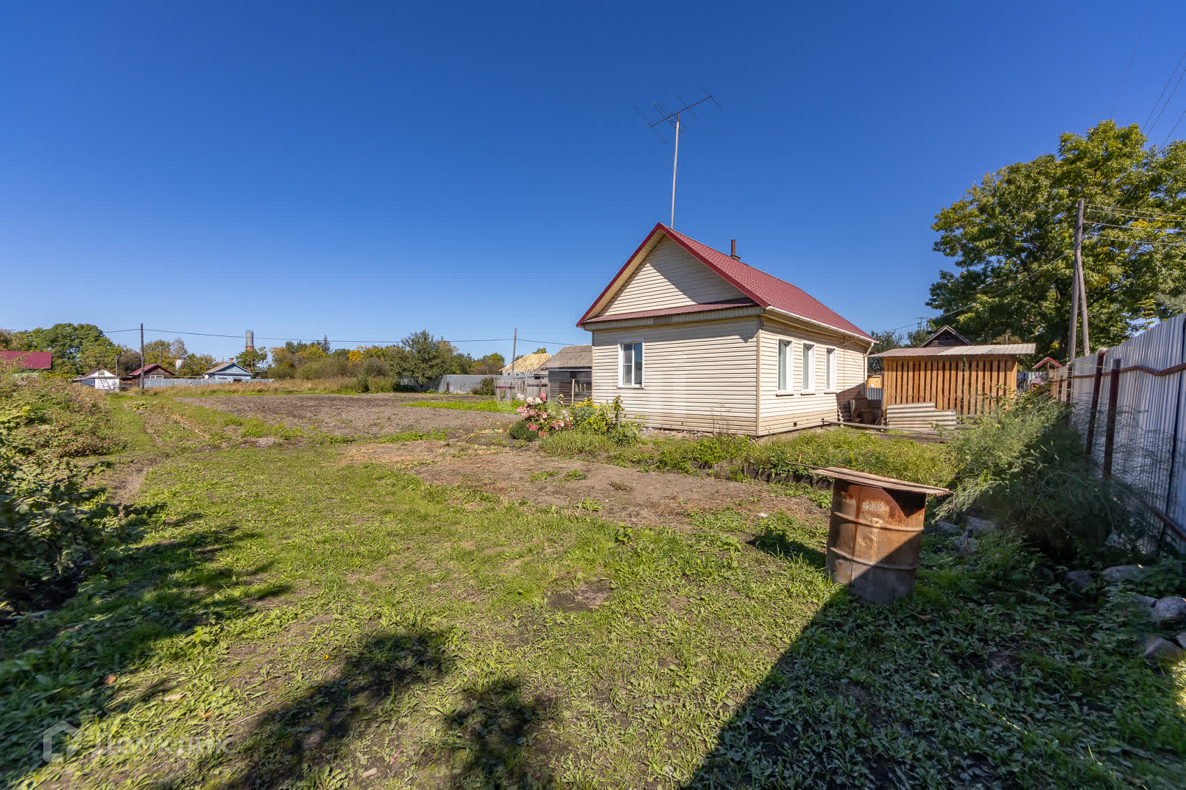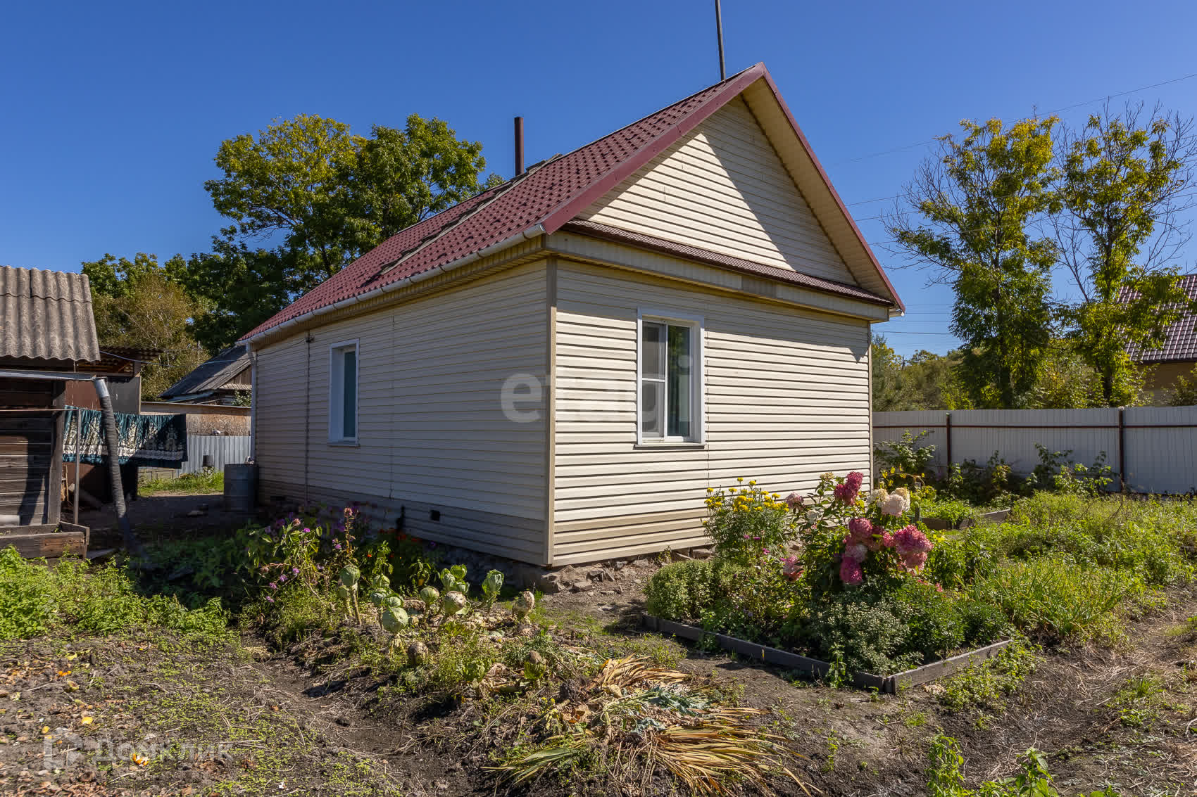 Новый забор из профлиста, новая металлическая крыша, дом обшит сайдингом.