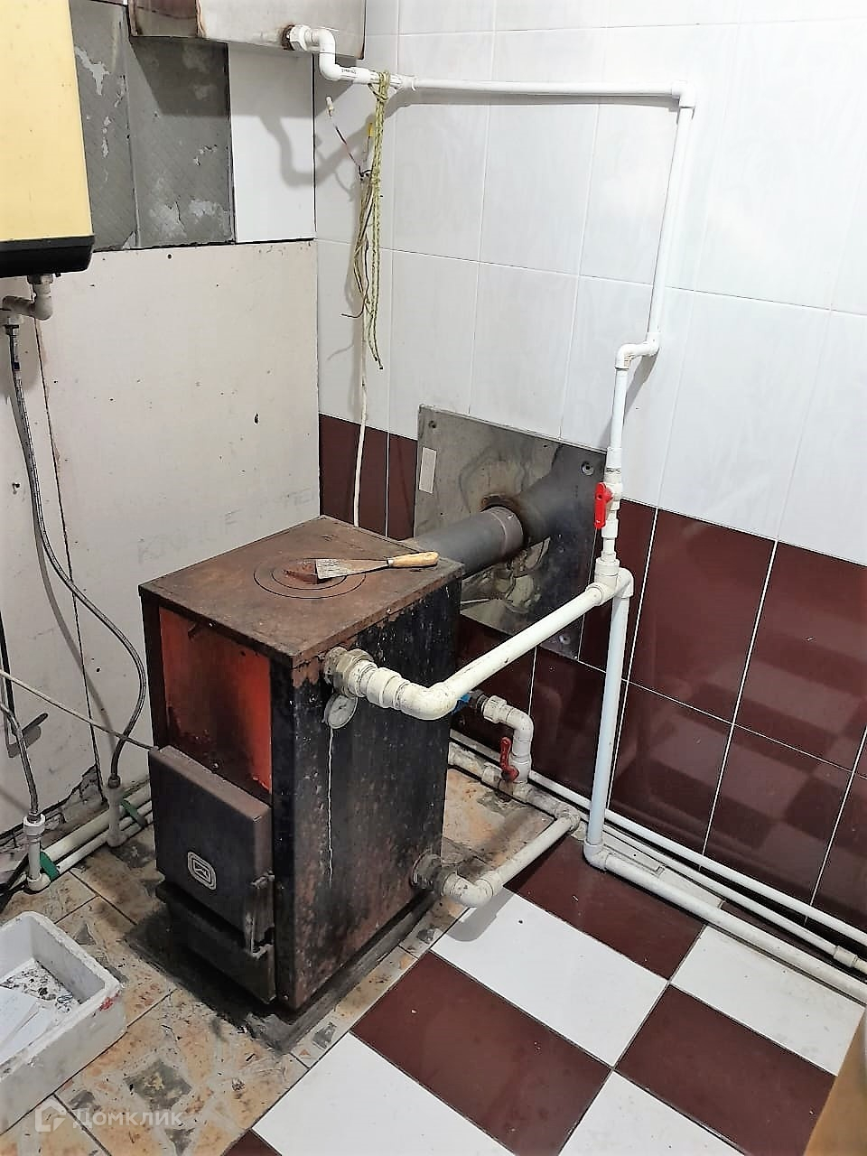 Отопление - котел, дрова и уголь.