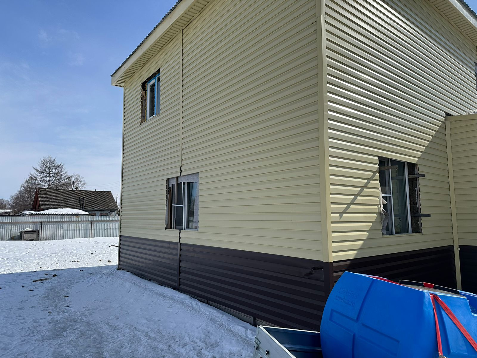 Дом построен из бруса, обшит сайдингом. Забор.  Ремонт, пластиковые окна. Натяжной потолок. межкомнатные двери.
