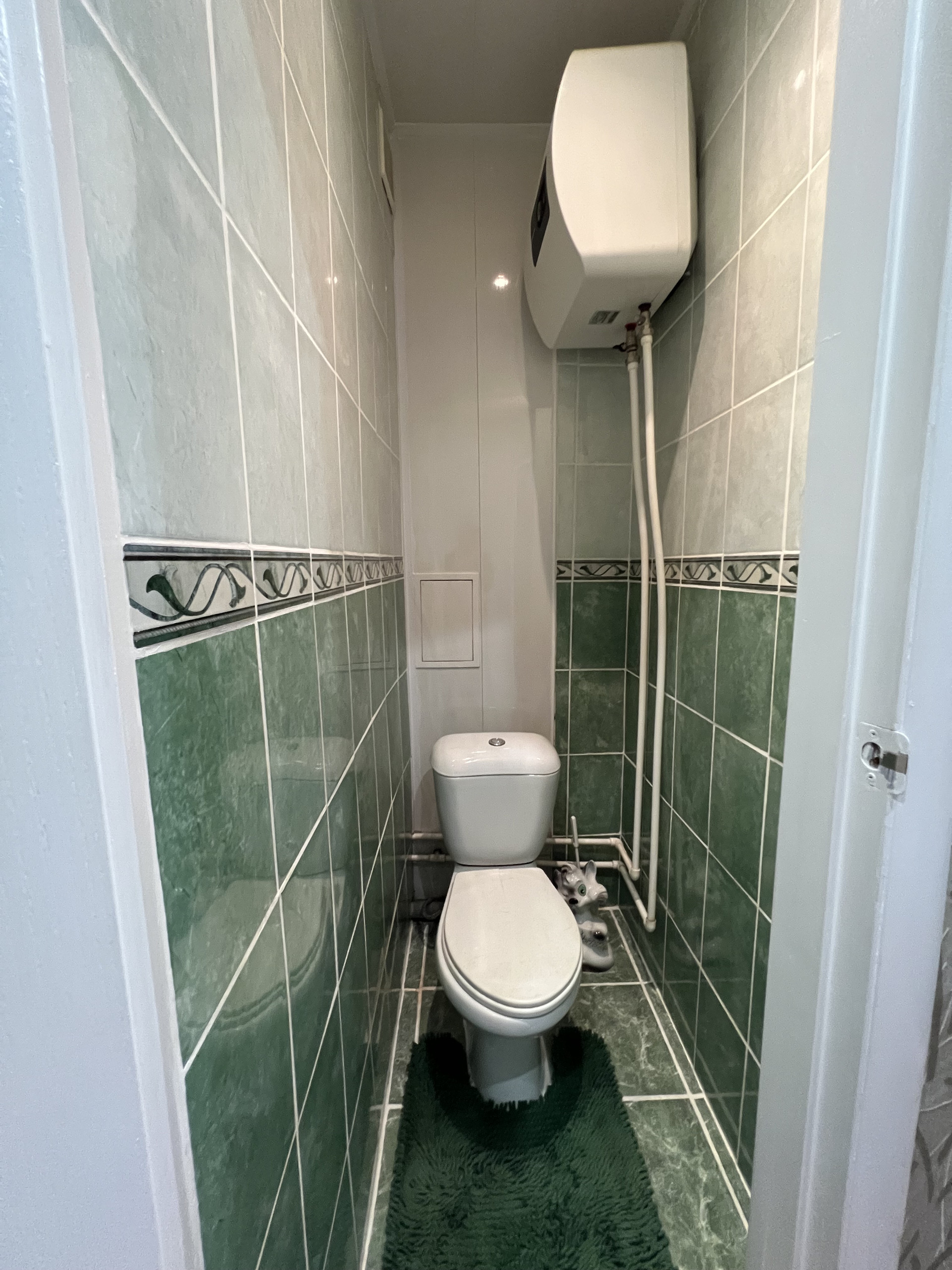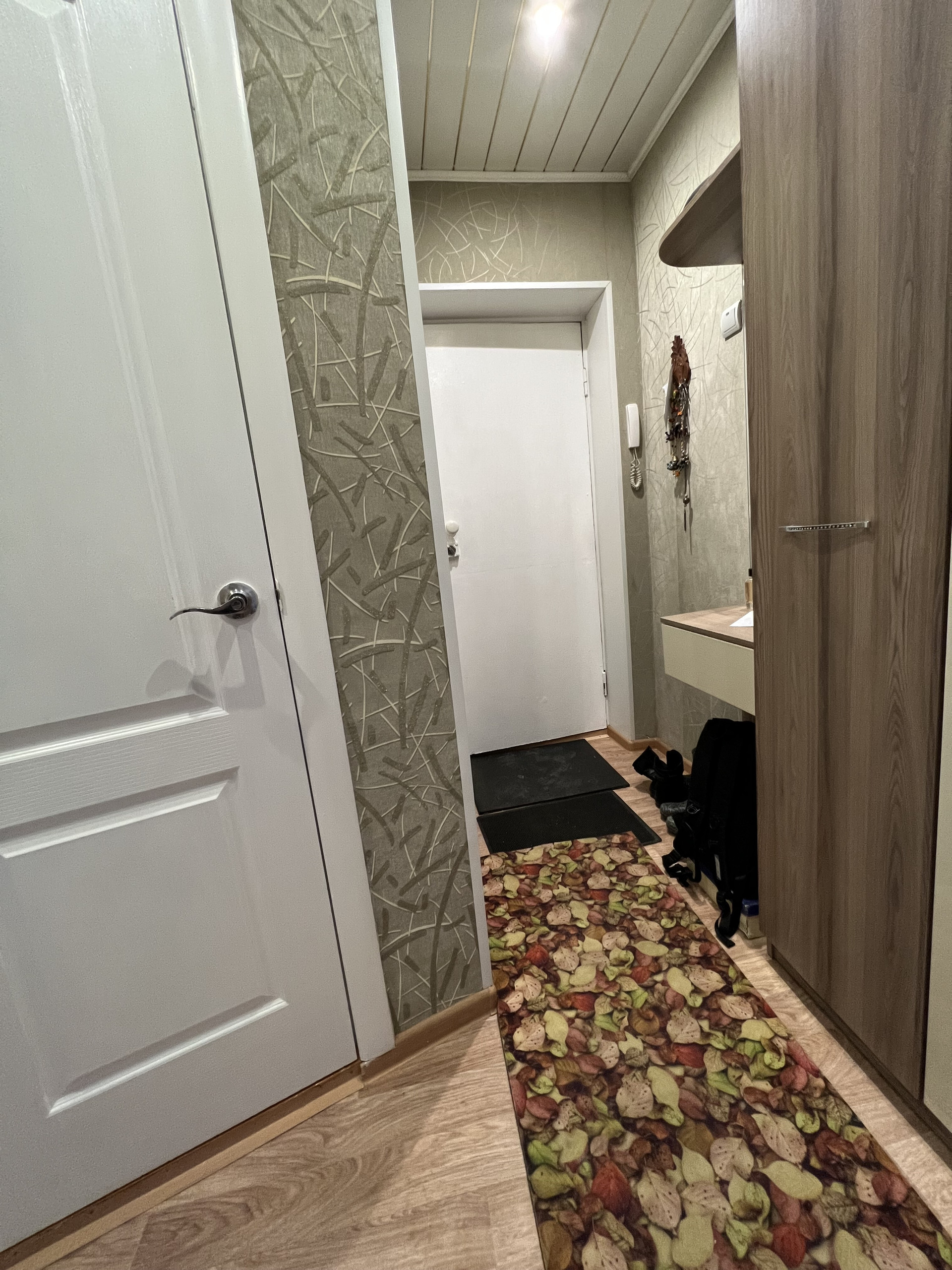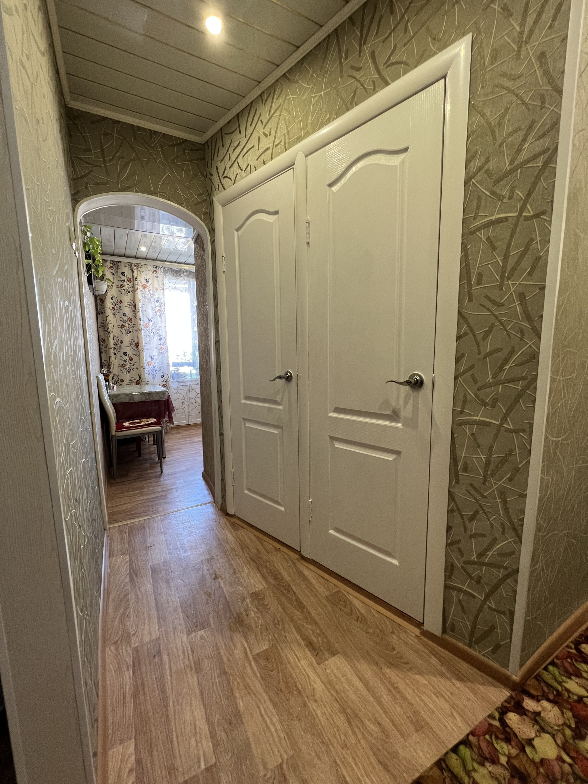 Стены ровные, пол линолеум, в ванной и туалете стены и пол - кафель, потолки в комнатах натяжные, в остальных помещениях-рейка с софитами.