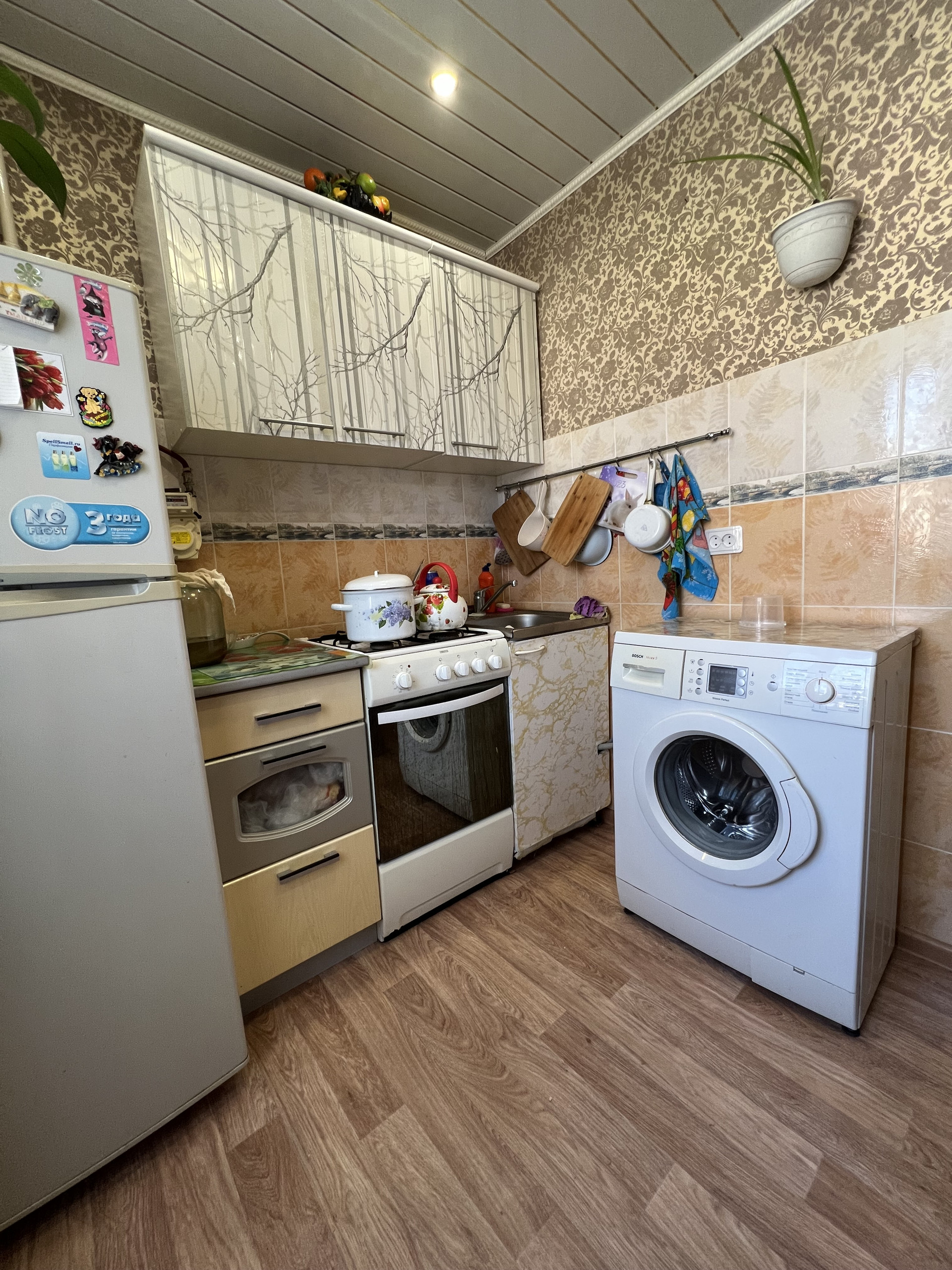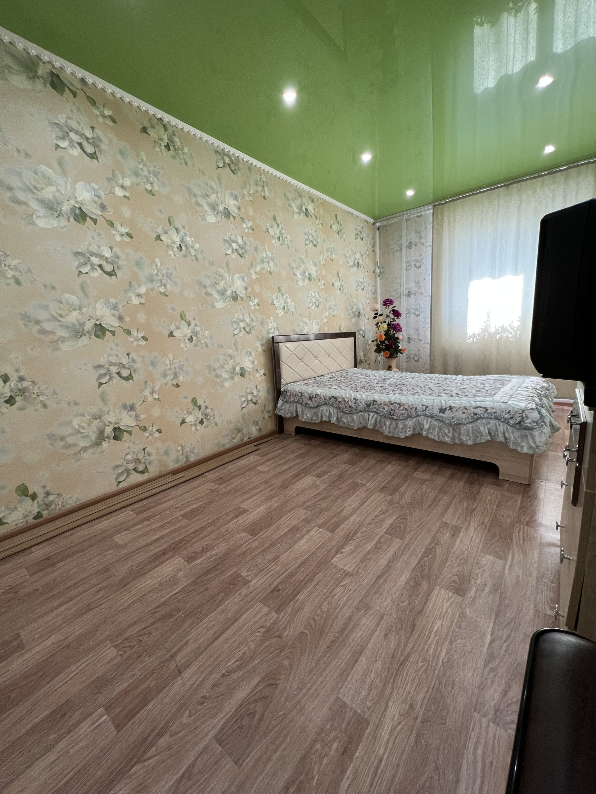Из мебели останется спальный гарнитур ( кровать, тумба под телевизор, шкаф). Кухонный гарнитур, стол, стулья, прихожая,плита, стиральная машина, водонагреватель.