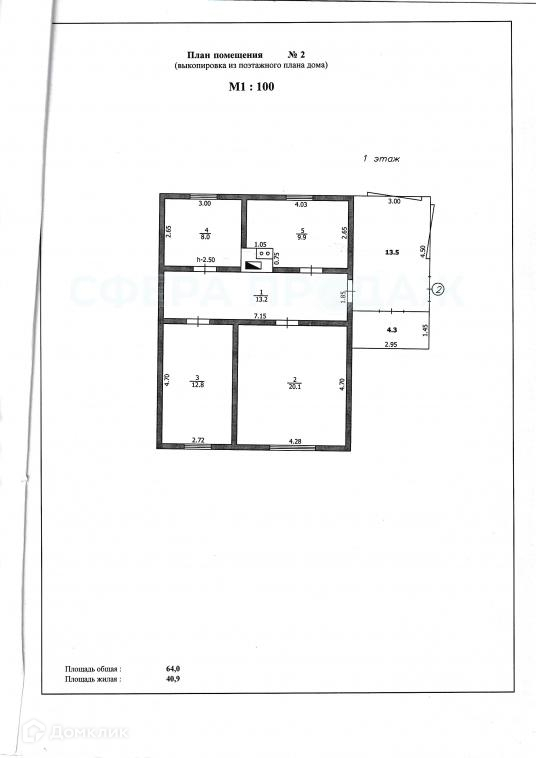 Общая площадь 64 м2