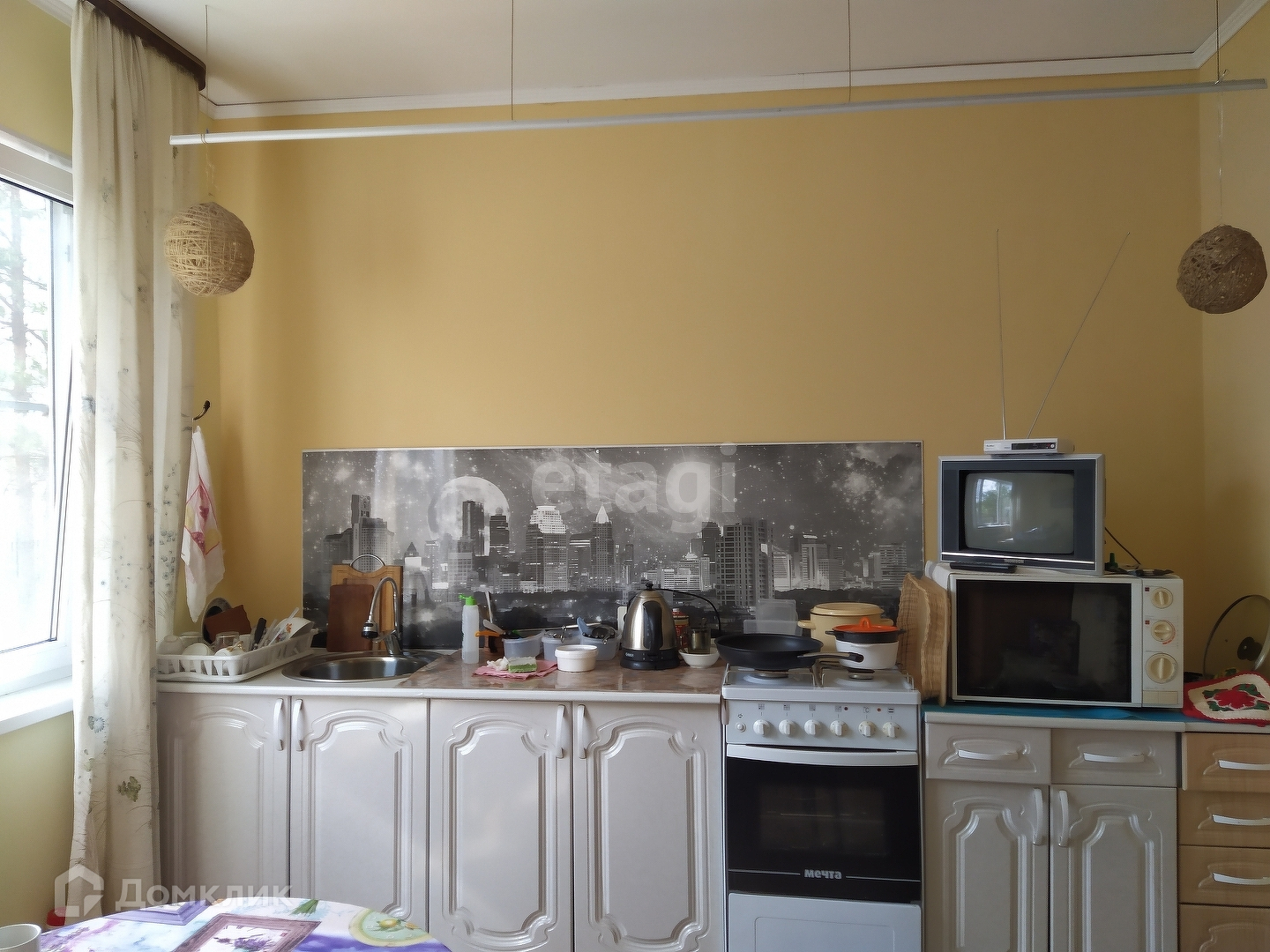 В доме просторная кухня- мечта любой хозяйки. За столом есть возможность разместить большую семью, где Вы будете наслаждаться за ужином общением друг друга.