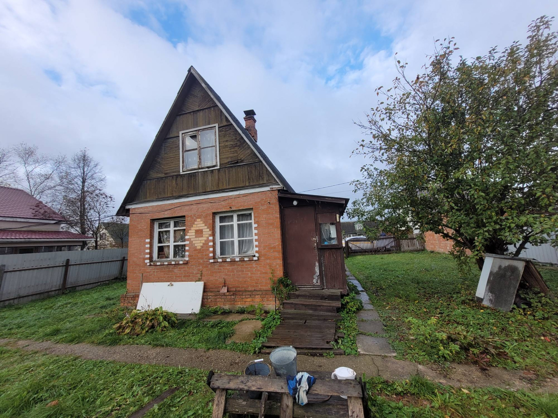 -Дом -2 этажа, первый этаж кирпич, второй деревянный.