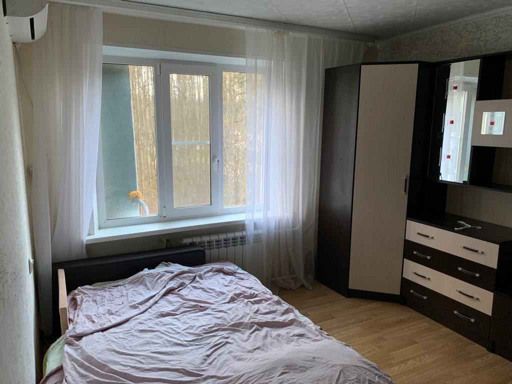 Продается отличная квартира на 4/9 этаже ОТ СОБСТВЕННИКА. В квартире поменяны все батареи, газовая труба и полотенцесушитель в ванной.  На кухне и в коридоре поменяна вся проводка, сделаны натяжные потолки. В комнате установлен кондиционер. Застекленный балкон. Вся мебель и техника остается в квартире (все, что на фото, кроме детской кроватки). Вид из окон на лес, где оборудованы освещенные зоны для пеших прогулок. Рядом с домом детская, спортивная площадки. В двух минутах ходьбы - автобусная остановка, поликлиника, магазины, пиццерия. Московская прописка. В собственности более 20 лет, один собственник. Срочная продажа. Реальному покупателю торг.