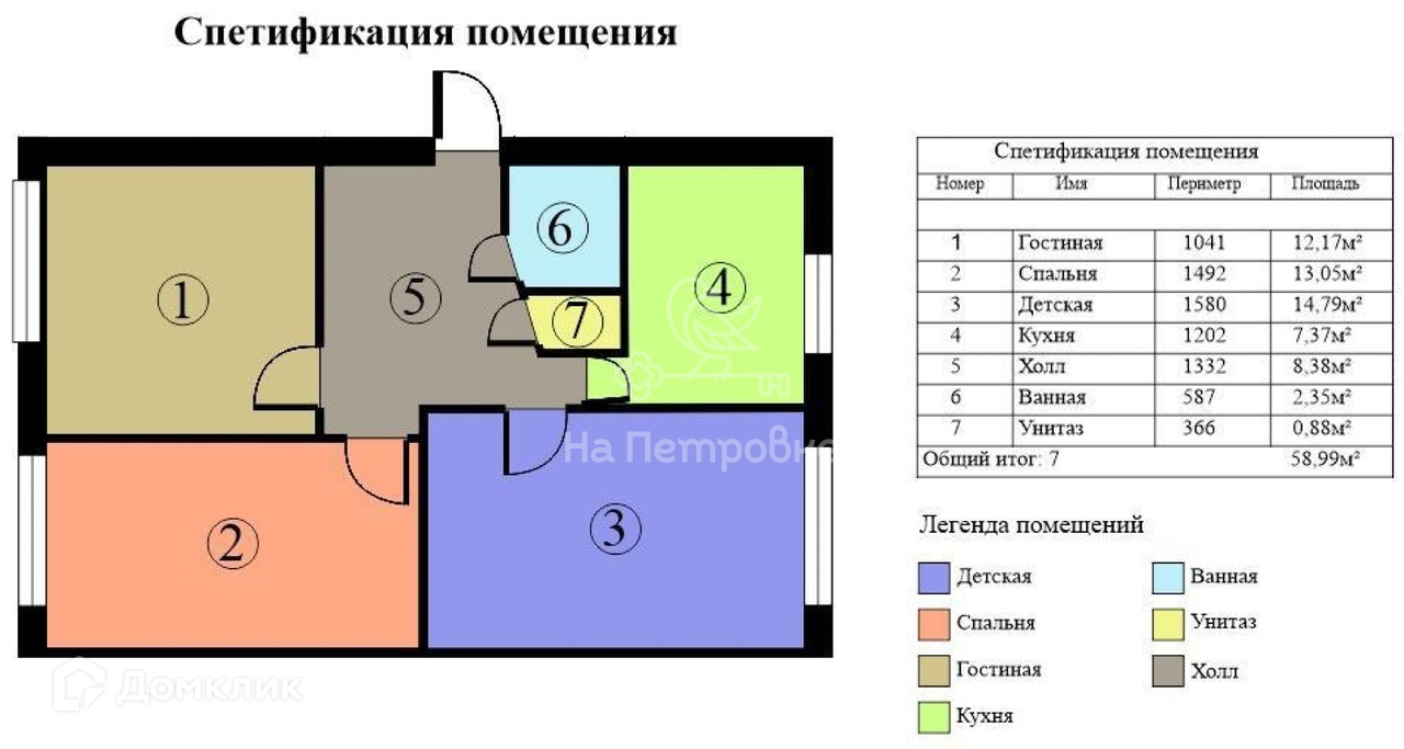 Общая площадь 59 м2
