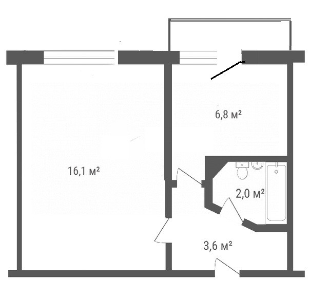 Балкон, лоджия 1 балкон