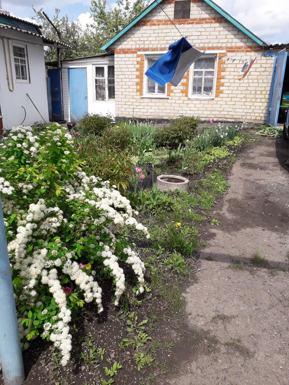 Соседи доброжелательные, рядом асфальтированная дорога, имеется гараж, летняя кухня, хозяйственные постройки. На участке деревья, кустарники, земля удобренная.