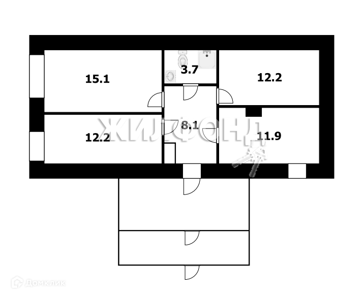 Общая площадь 63.7 м2