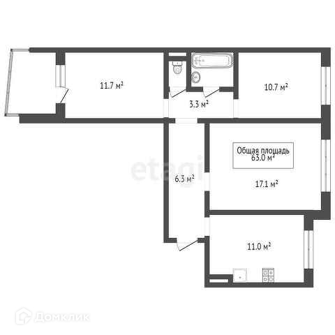 Общая площадь 63 м2