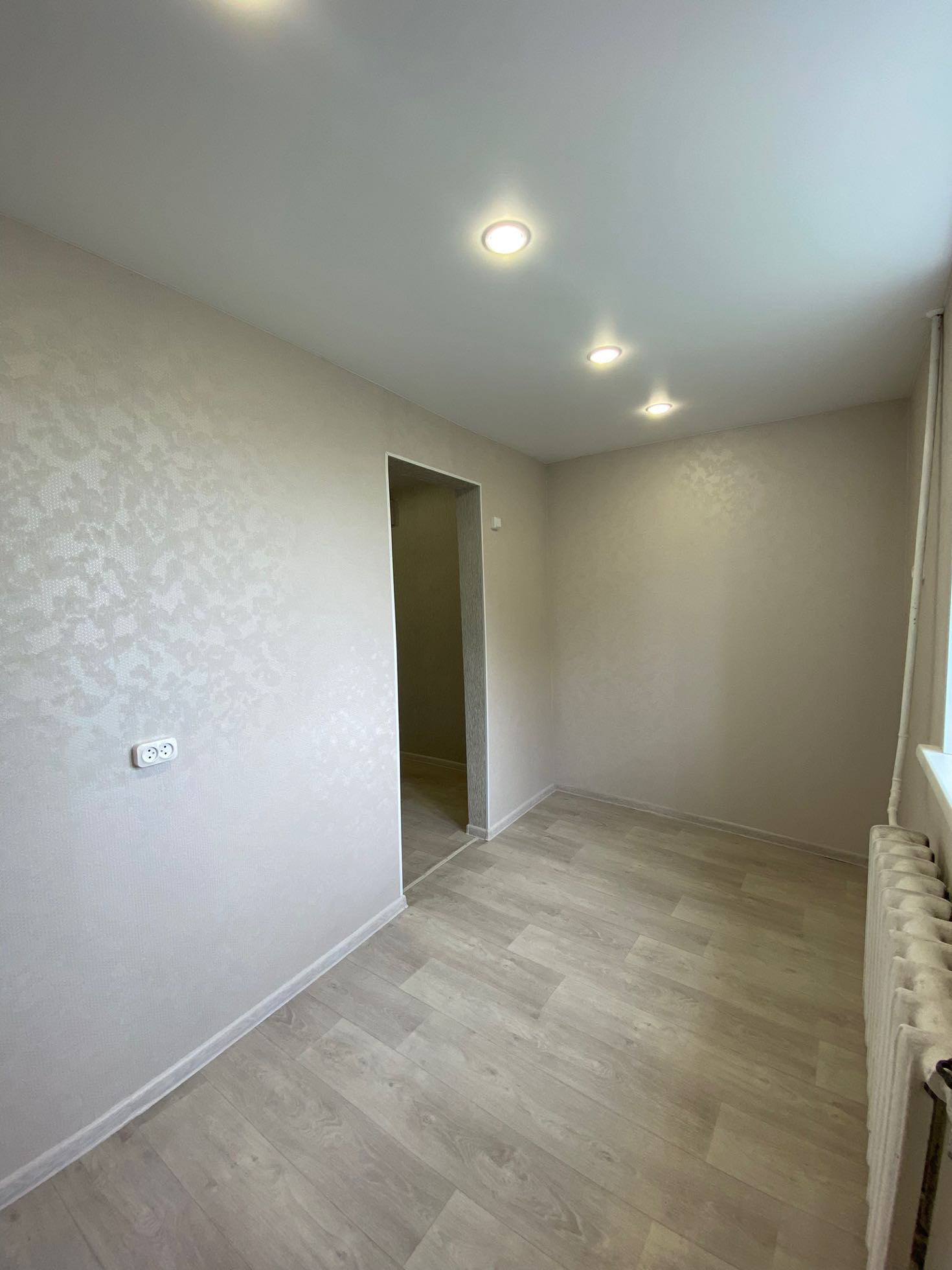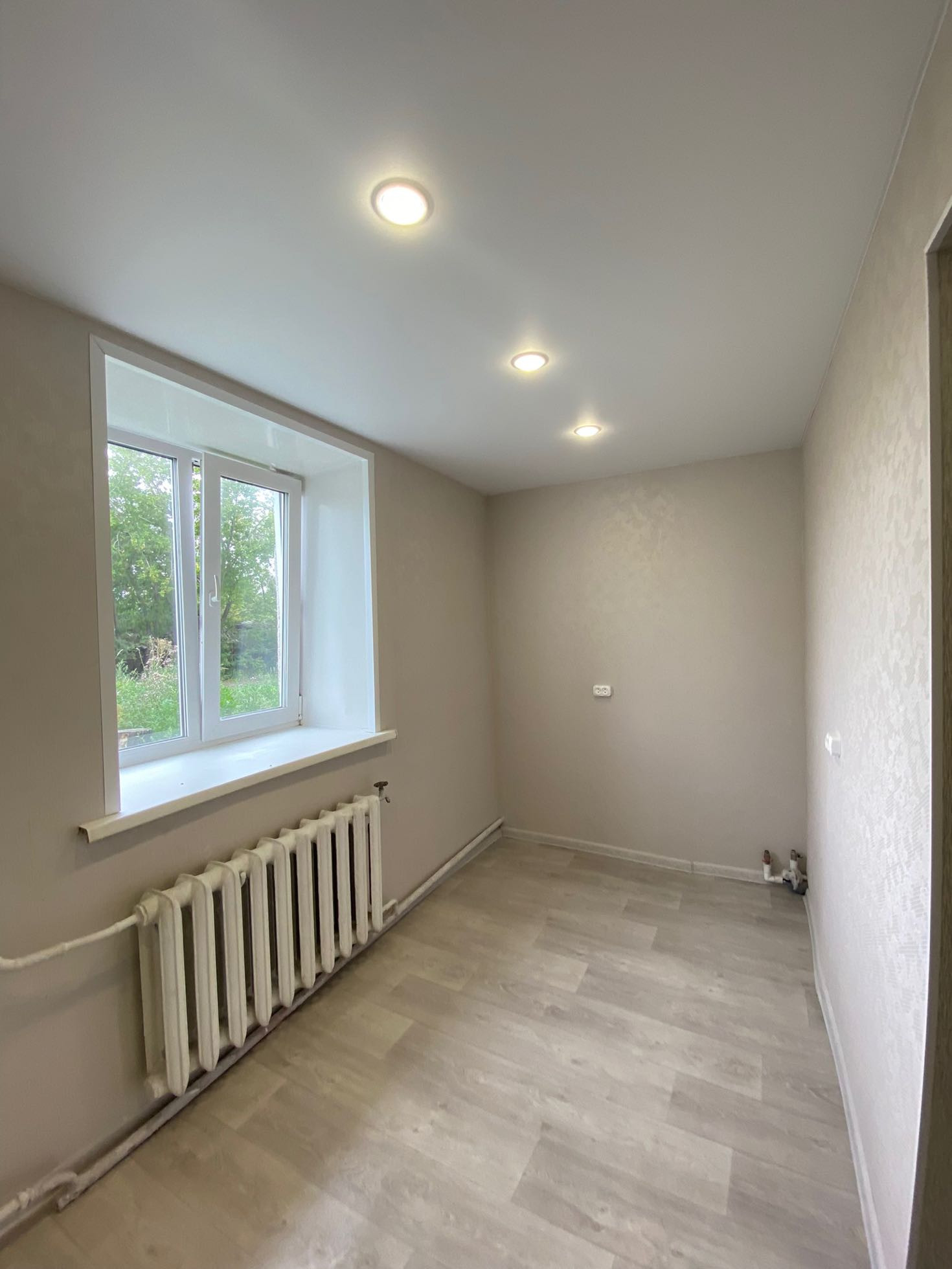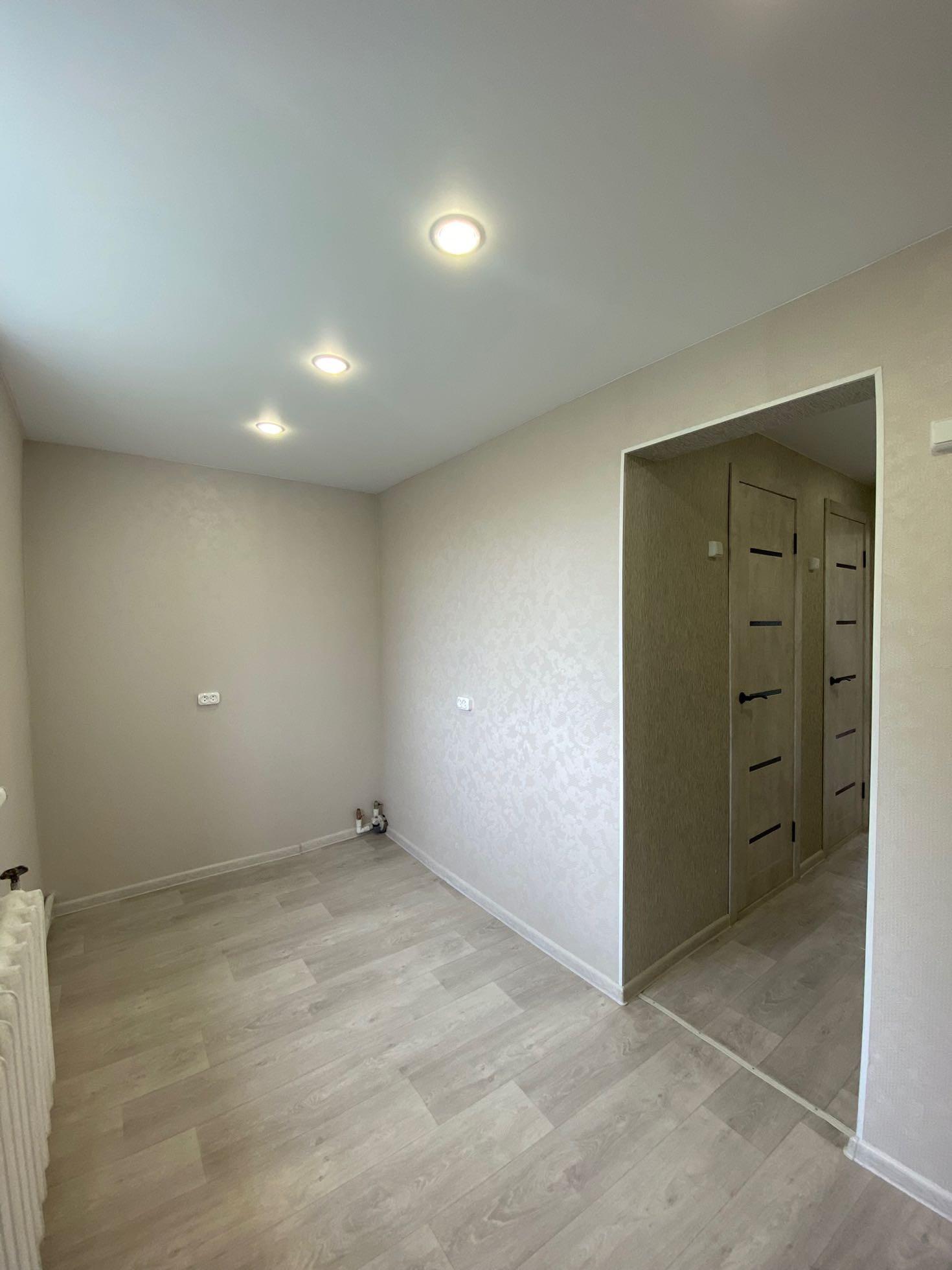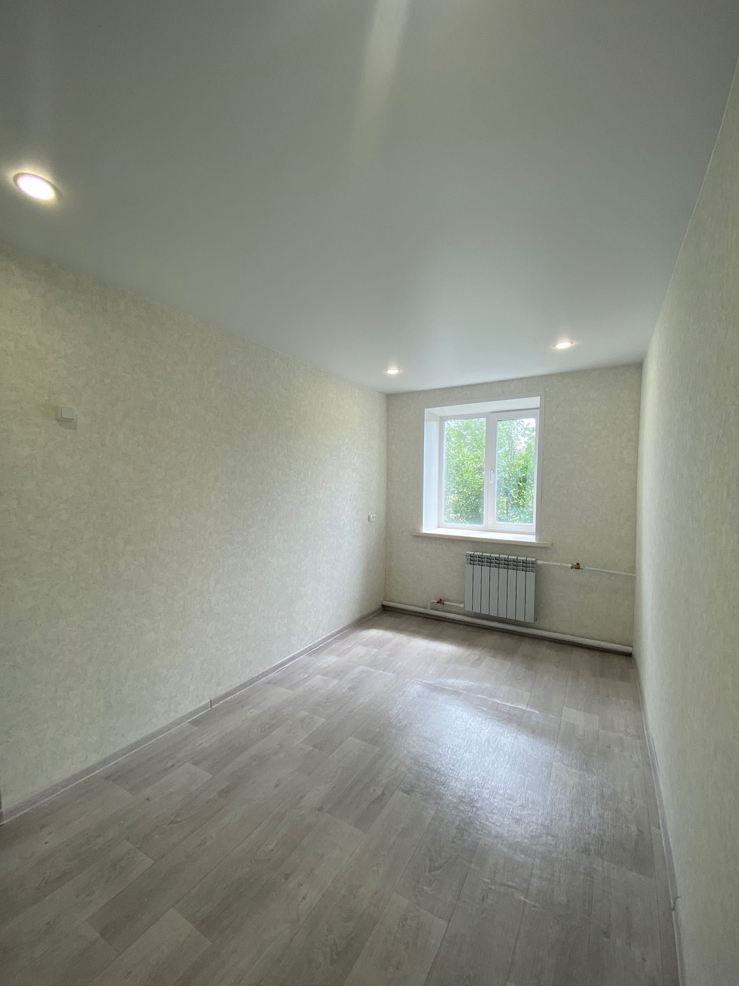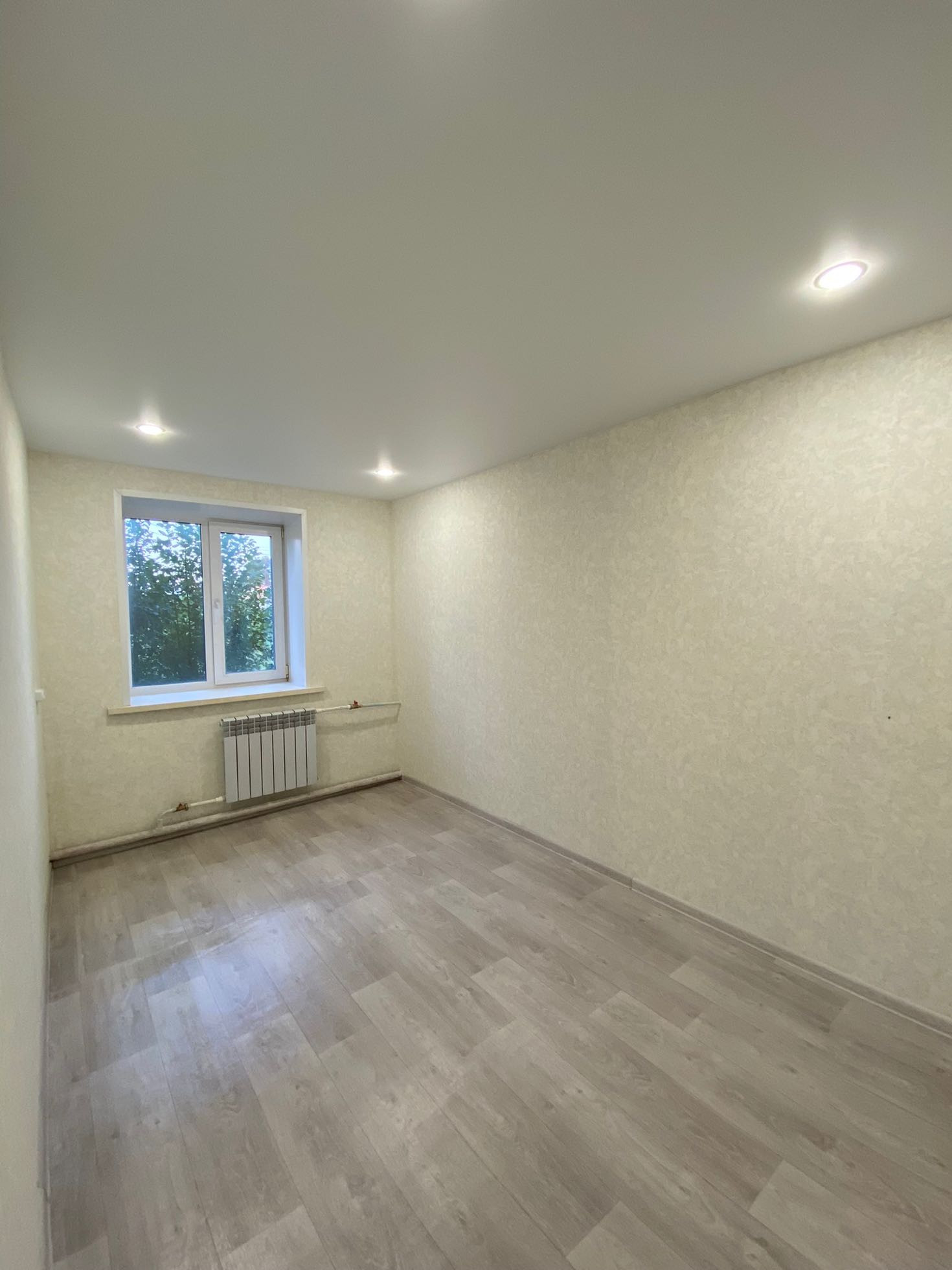 Полностью новая электрика и сантехника, натяжные потолки, в туалете керамогранит, новый унитаз и ванна, водонагреватель, в комнатах обои нейтральных тонов, новый линолеум. Установлены межкомнатные двери и входная металлическая дверь.