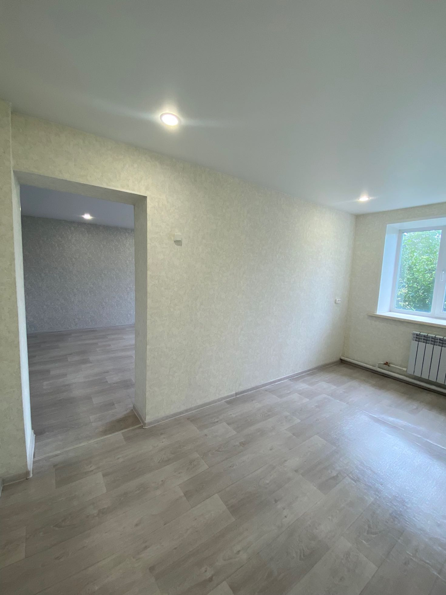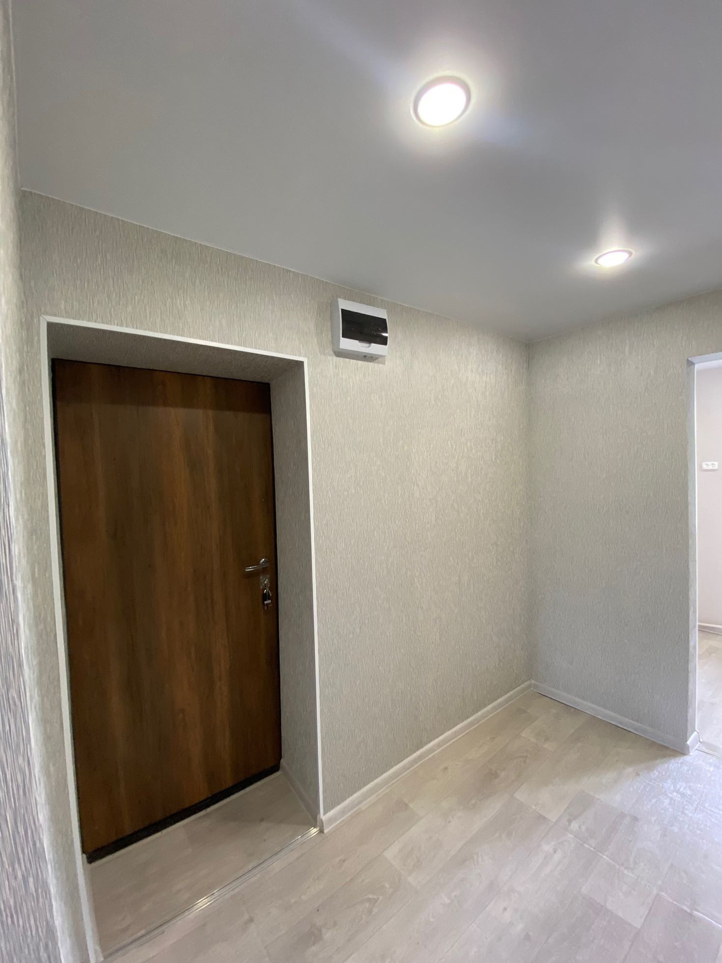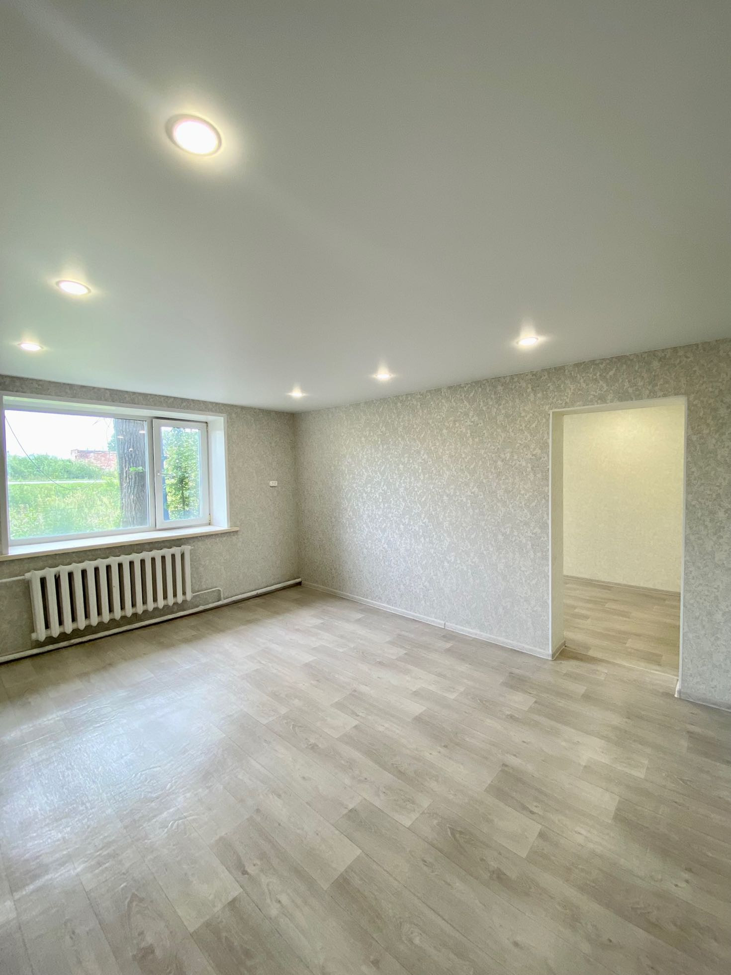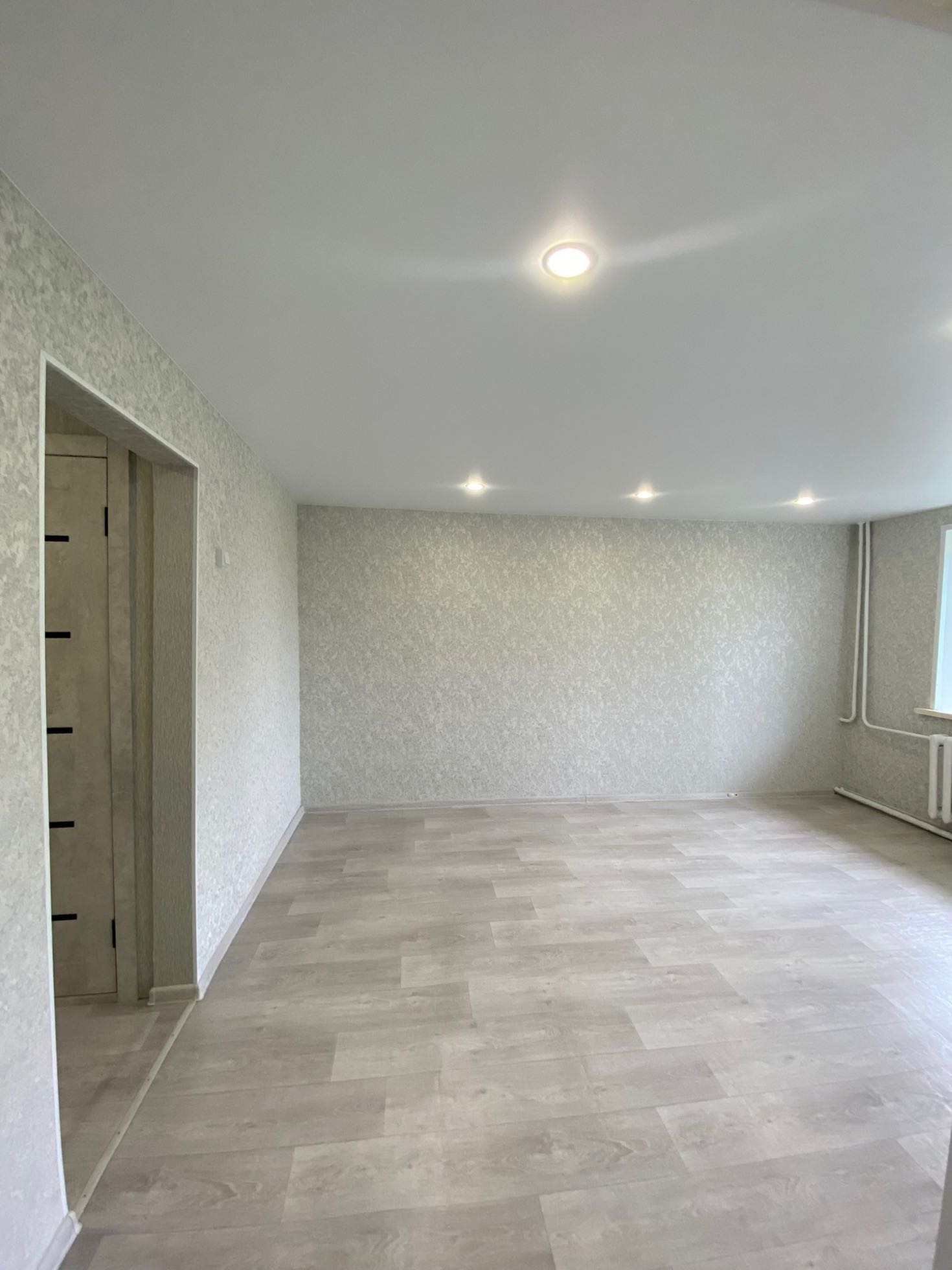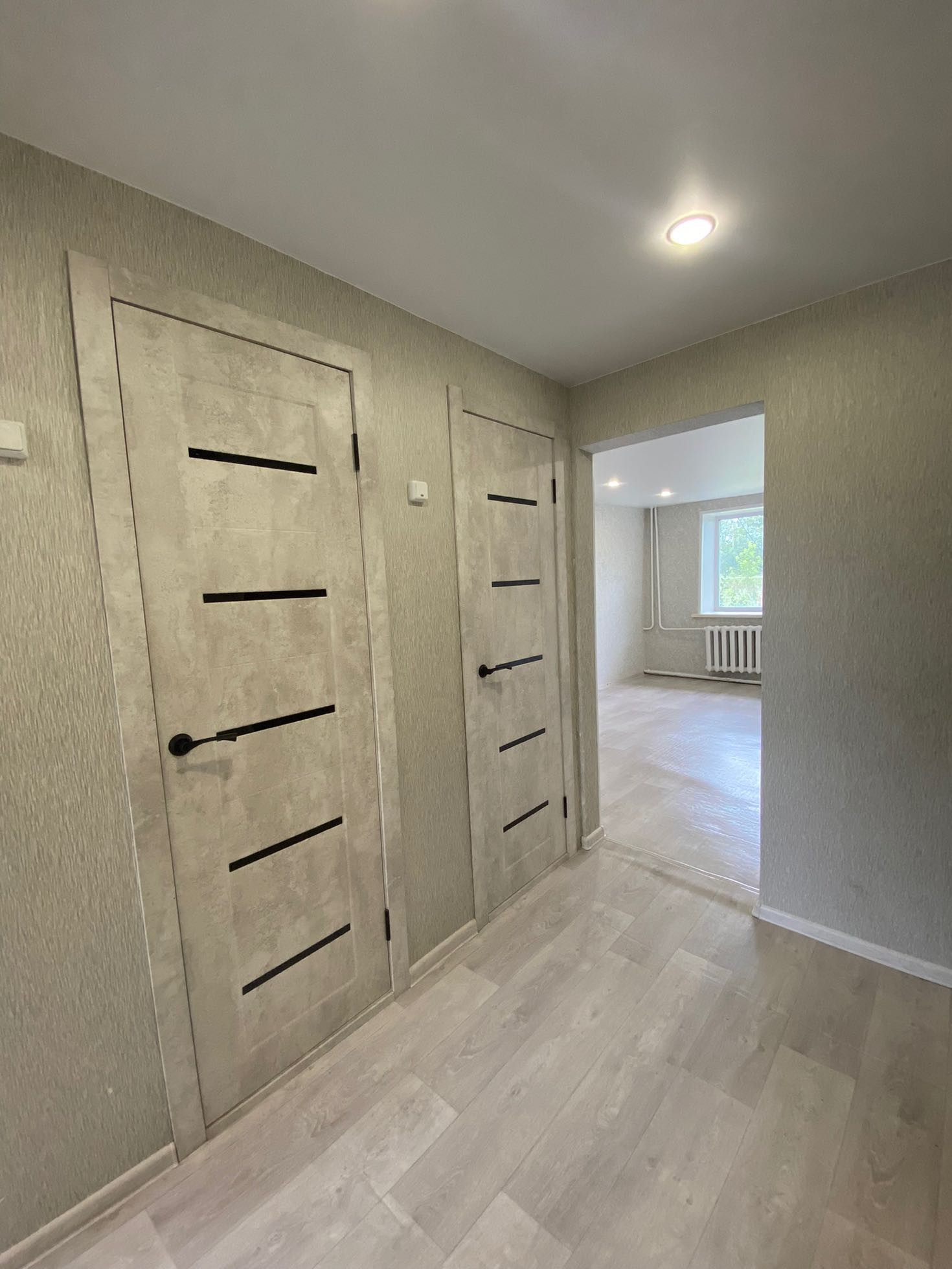 Полностью новая электрика и сантехника, натяжные потолки, в туалете керамогранит, новый унитаз и ванна, водонагреватель, в комнатах обои нейтральных тонов, новый линолеум. Установлены межкомнатные двери и входная металлическая дверь.