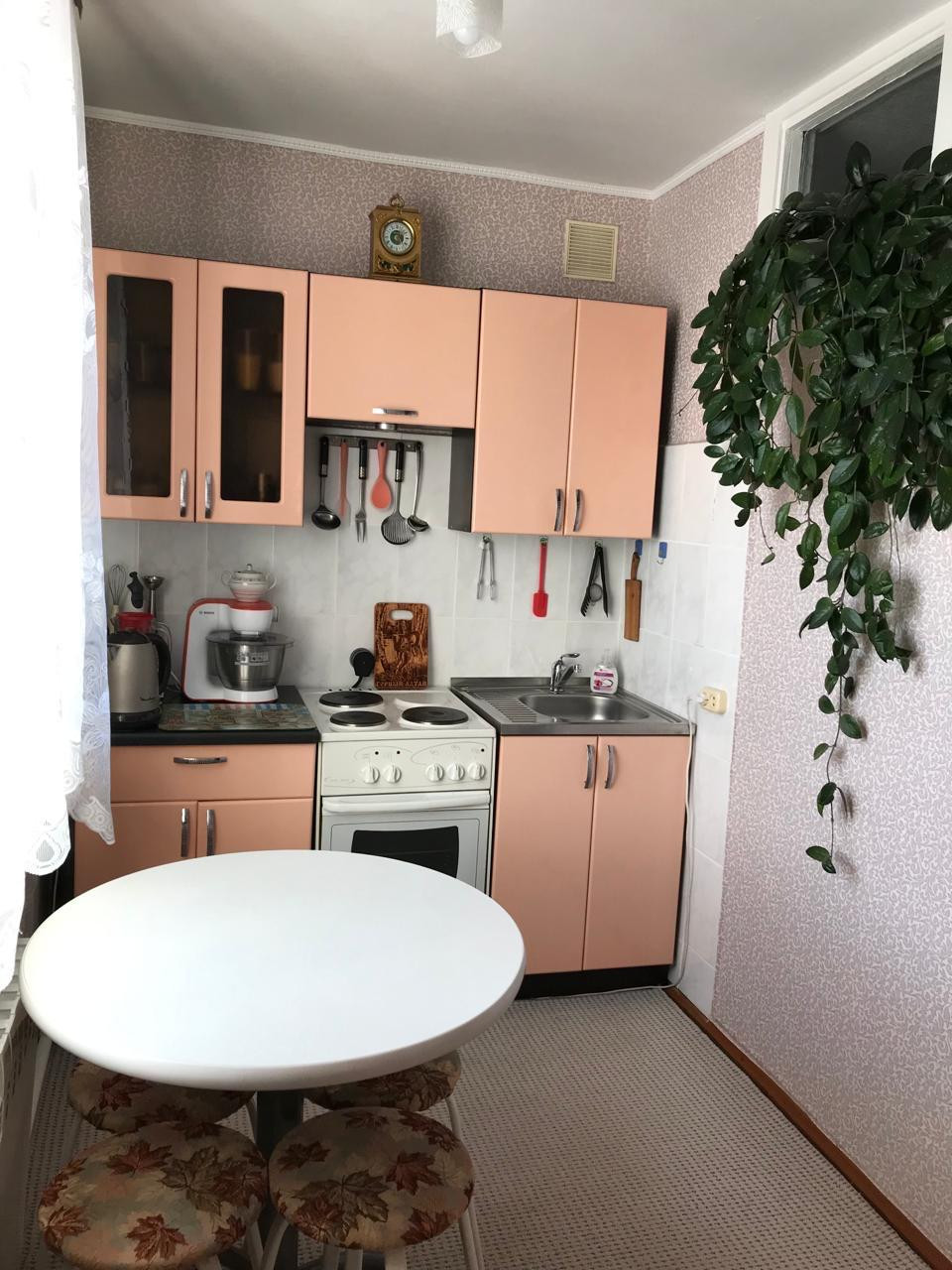 Сделан отличный ремонт, не требующий вложений. Во всей квартире пластиковые окна, выровнены потолки, в зале натяжной потолок, на стенах качественные обои. В ванной комнате пол и стены до полотка – кафель. Планировка квартиры на две стороны. В квартире есть несколько ниш для хранения, на кухне большая ниша – «зимний холодильник. По желанию покупателя можем оставить мебель. Также к квартире бонусом для покупателя остаётся металлический гараж с погребом и небольшой земельный участок под посадки.
