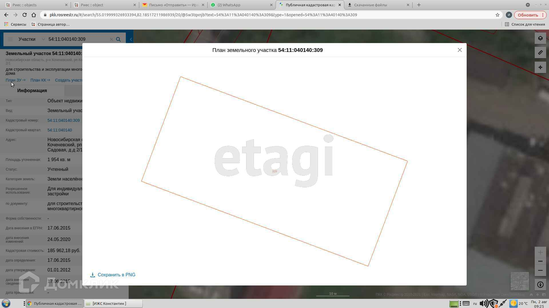 Площадь участка 19.54 сот.