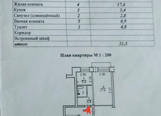 Продаю 1-комнатную квартиру, 31.7 м2, Центральная улица, 14