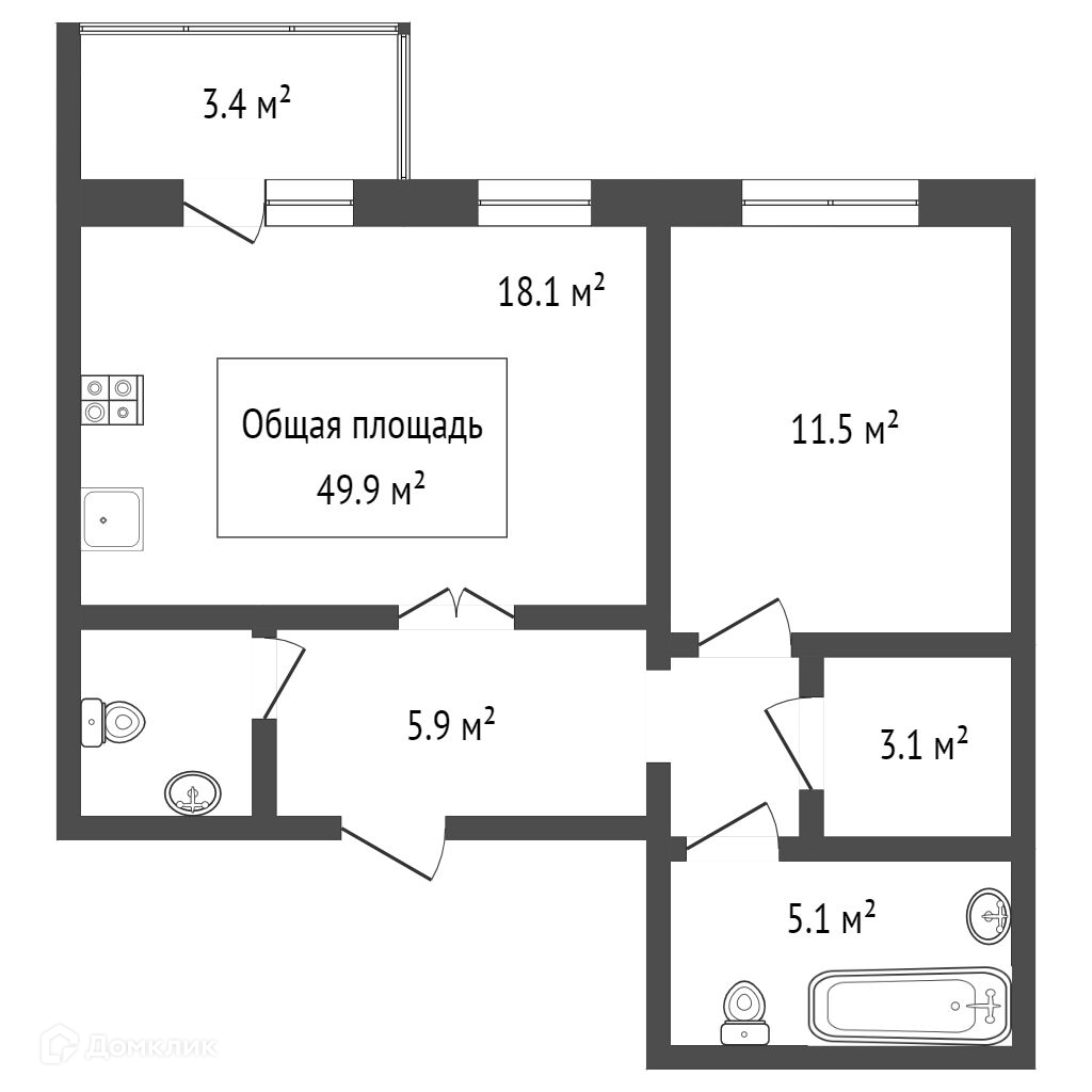 кухня-гостинная 18 кв.м, спальня 11кв.м, прачечная, совмещенный санузел, и отдельная гардеробная.