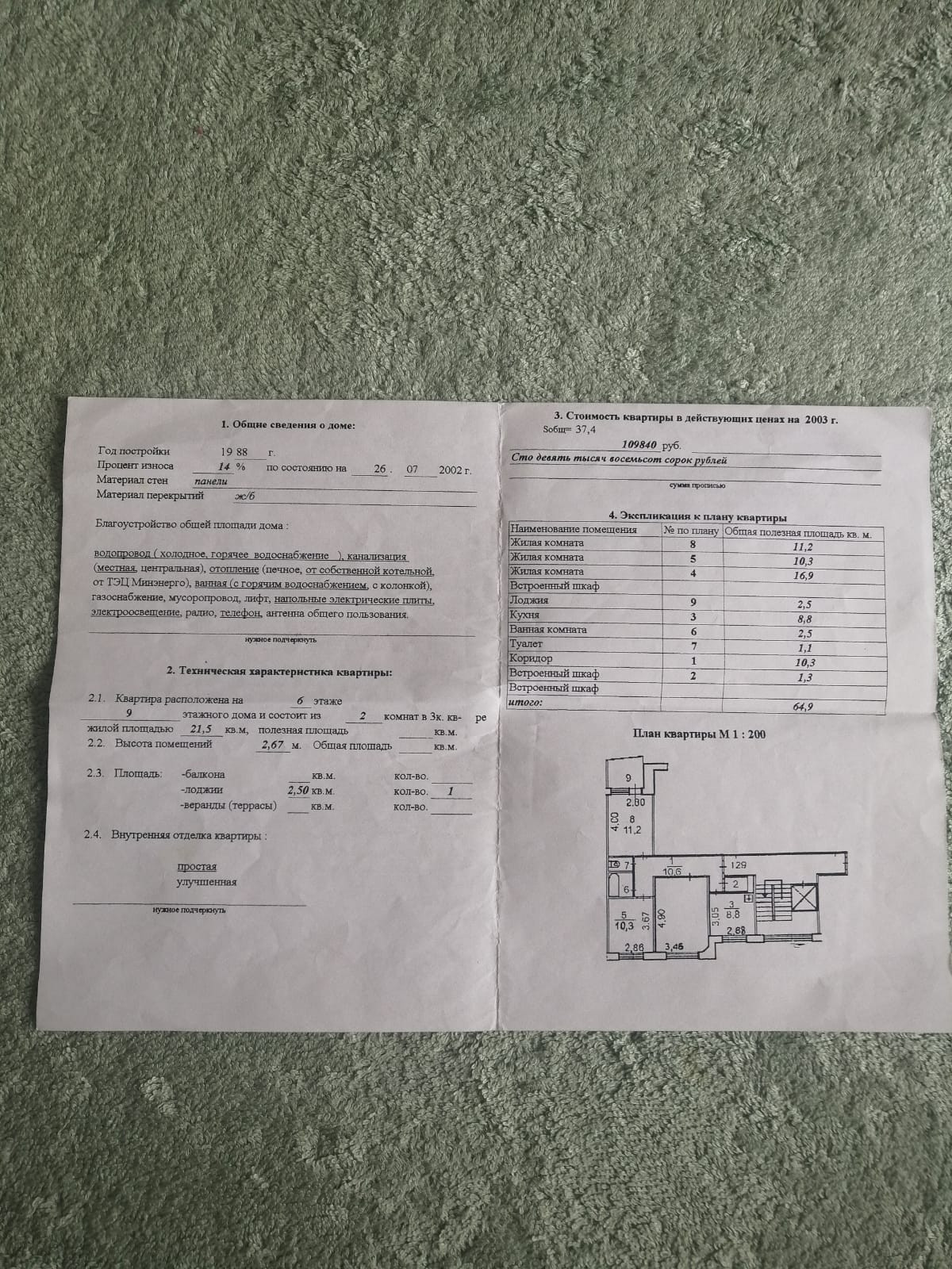 Общая площадь 64.9 м2