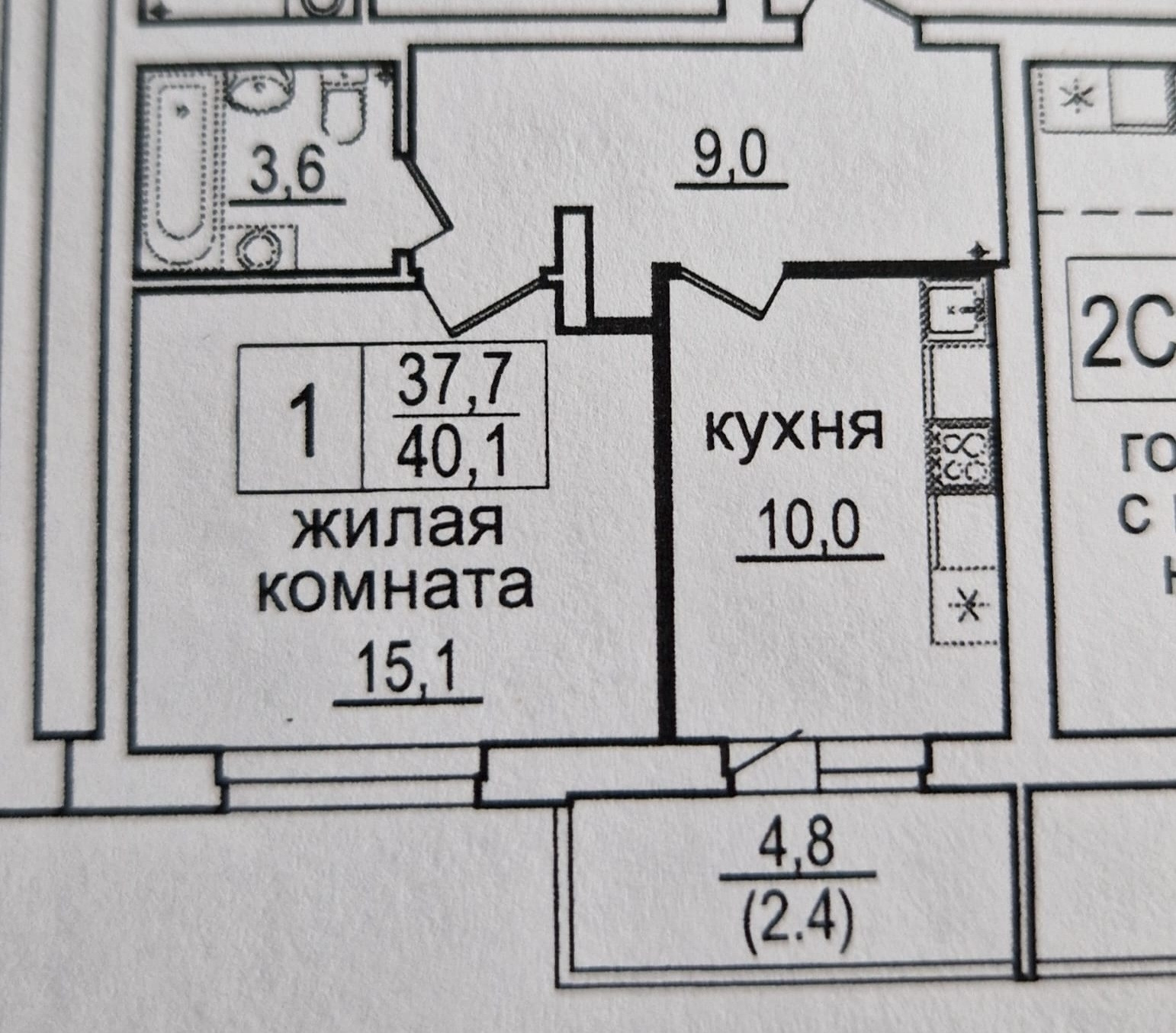 Общая площадь 40 м2