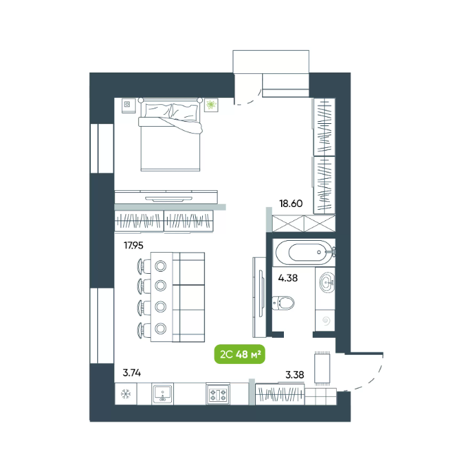 Общая площадь 48.43 м2