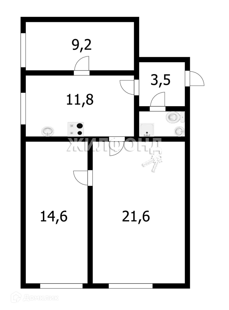 Жилая площадь 45.4 м2
