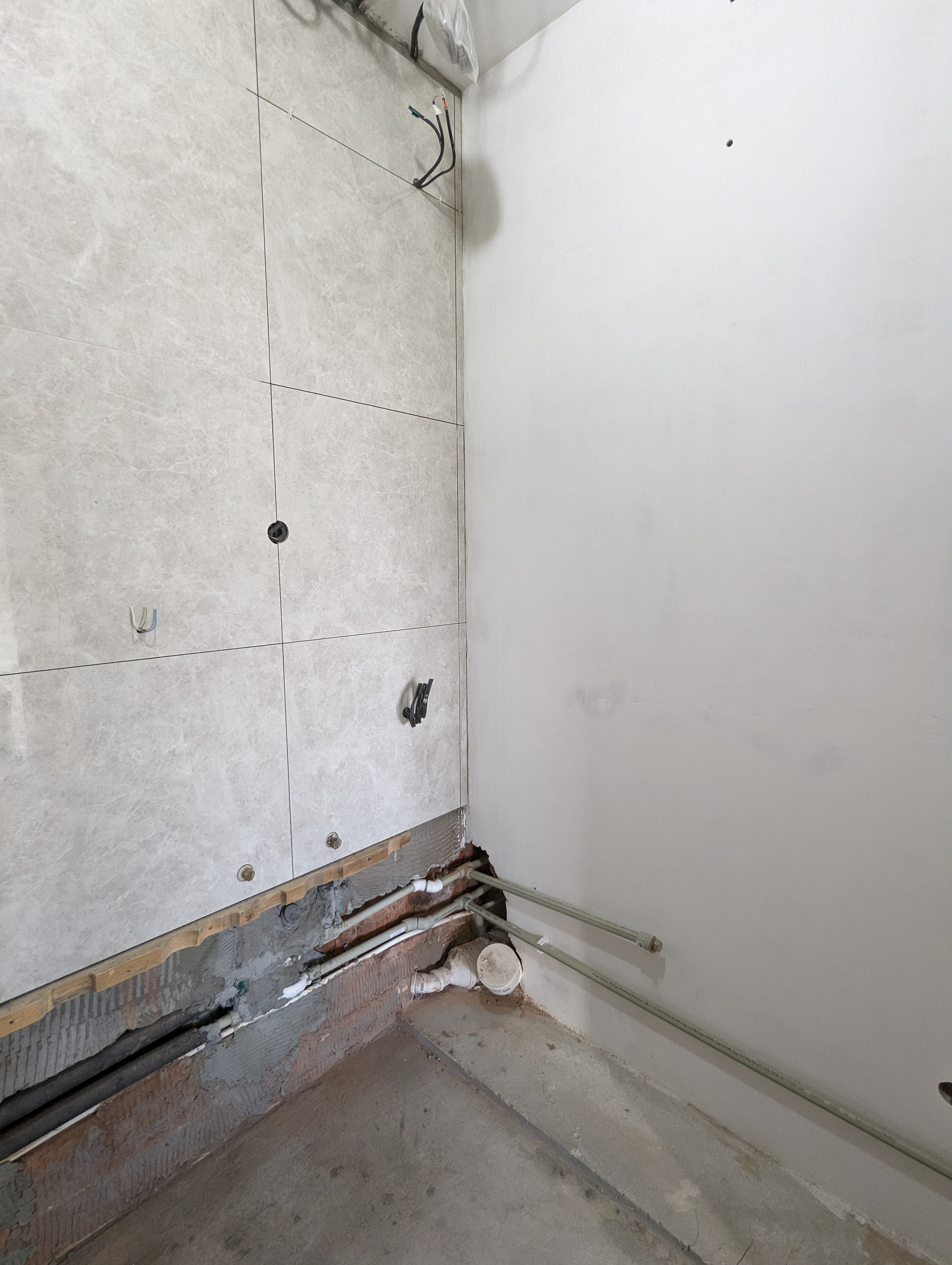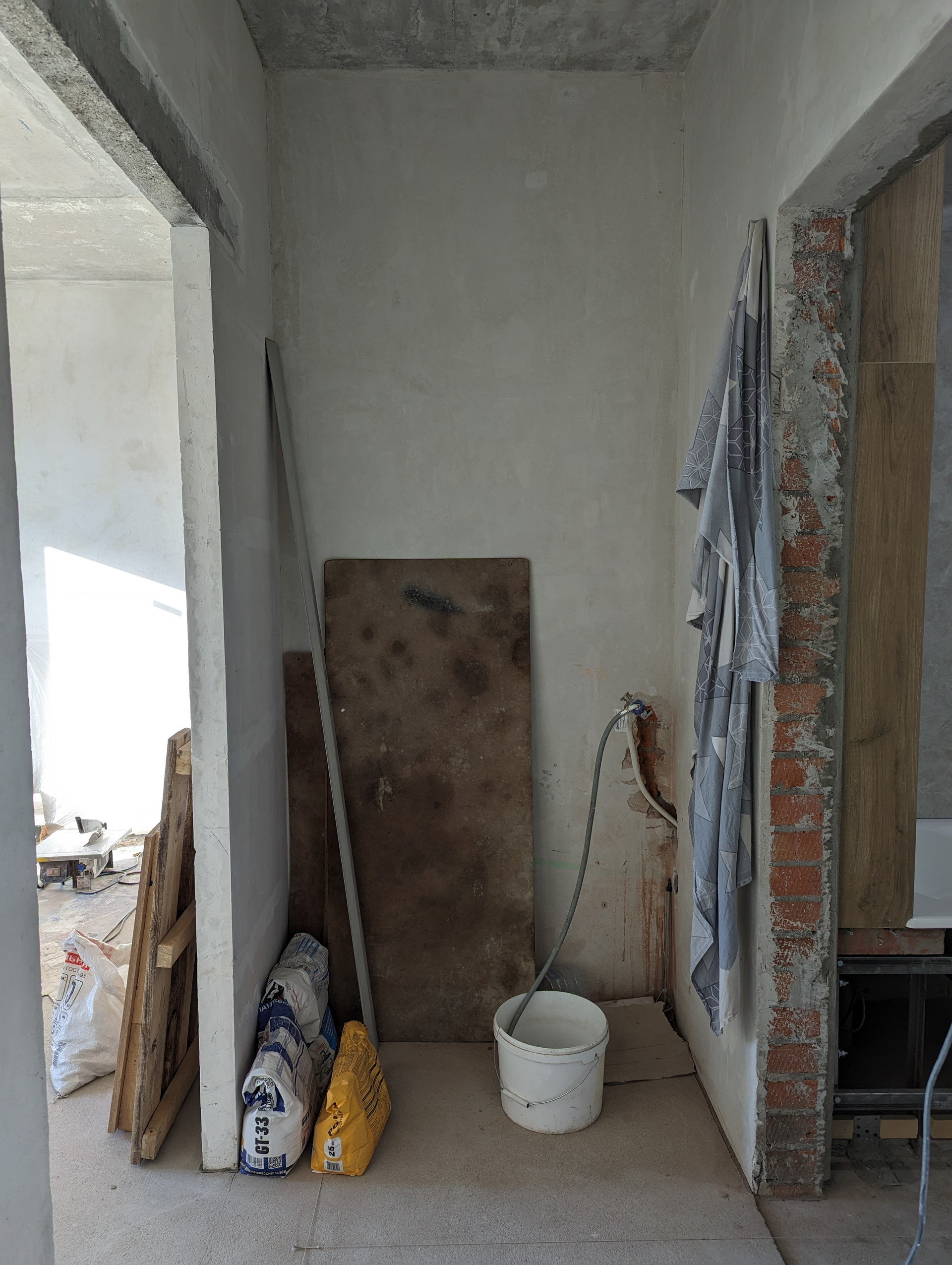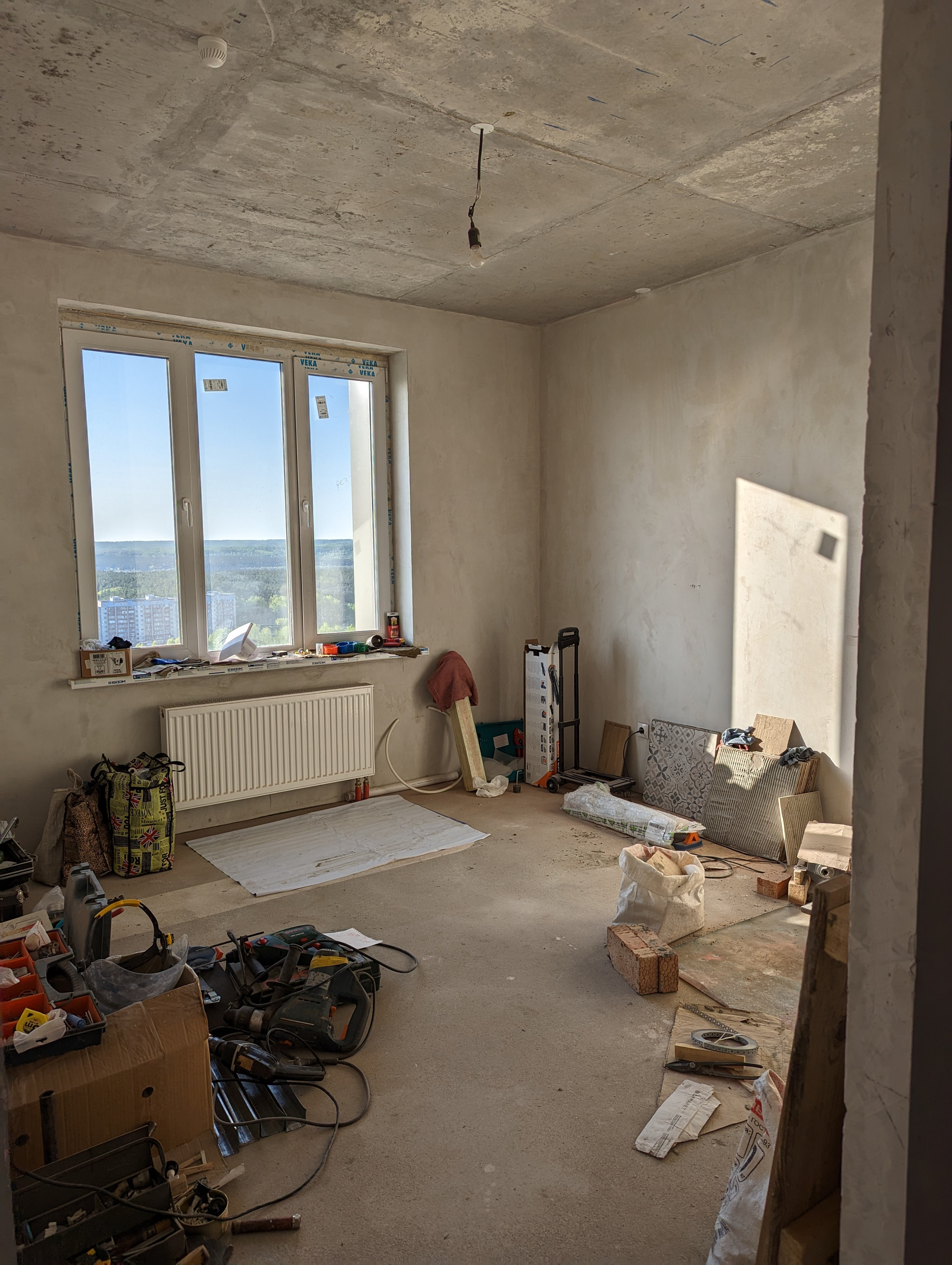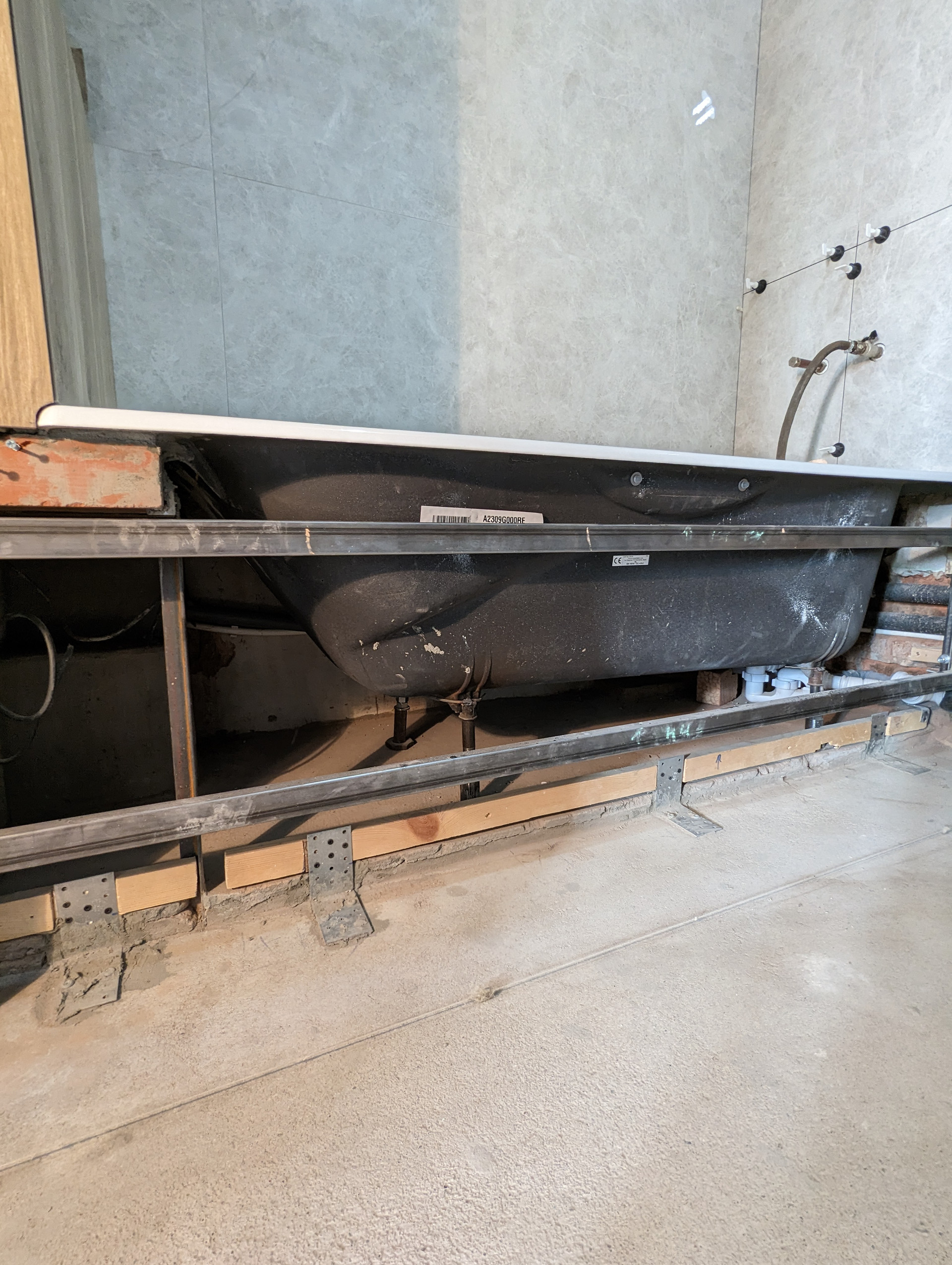 + Готовность большого санузла 80%. Делал профессионал.  Правильно установлена испанская чугунная ванна Roca. Никаких силиконов, плитка заходит на ванну, плесень и подтекания исключены. Плитка Laparet, вся закуплена. Дальнейший ремонт приостановлен, так как пол планируется в одном уровне и сначала нужно сделать пол в комнатах.