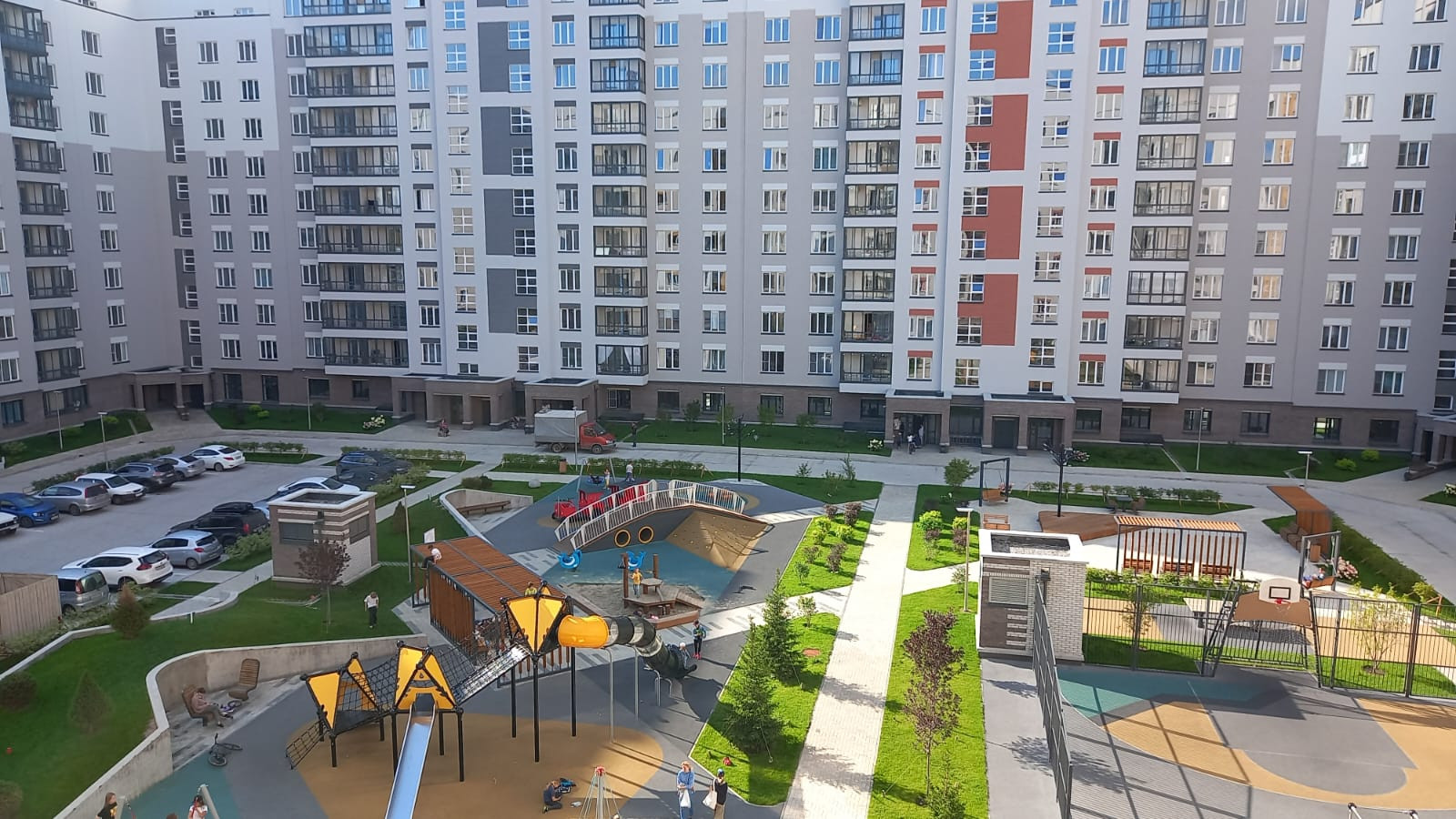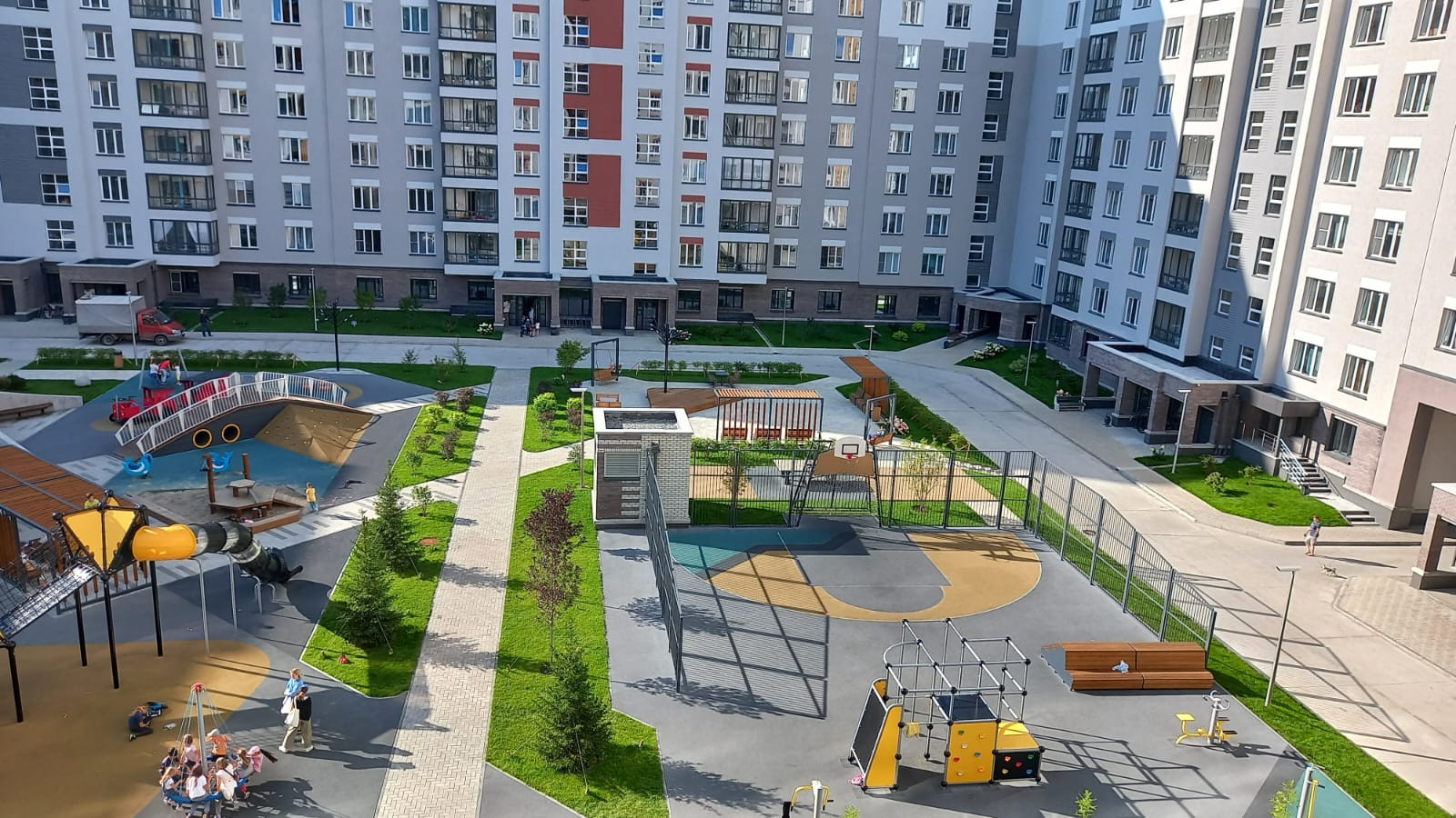 В шаговой доступности вся инфраструктура: детские сады, школы, бассейн, стадион, магазины, поликлиника, аптеки, МФЦ, остановка общественного транспорта, парк отдыха с озером, горнолыжная трасса.