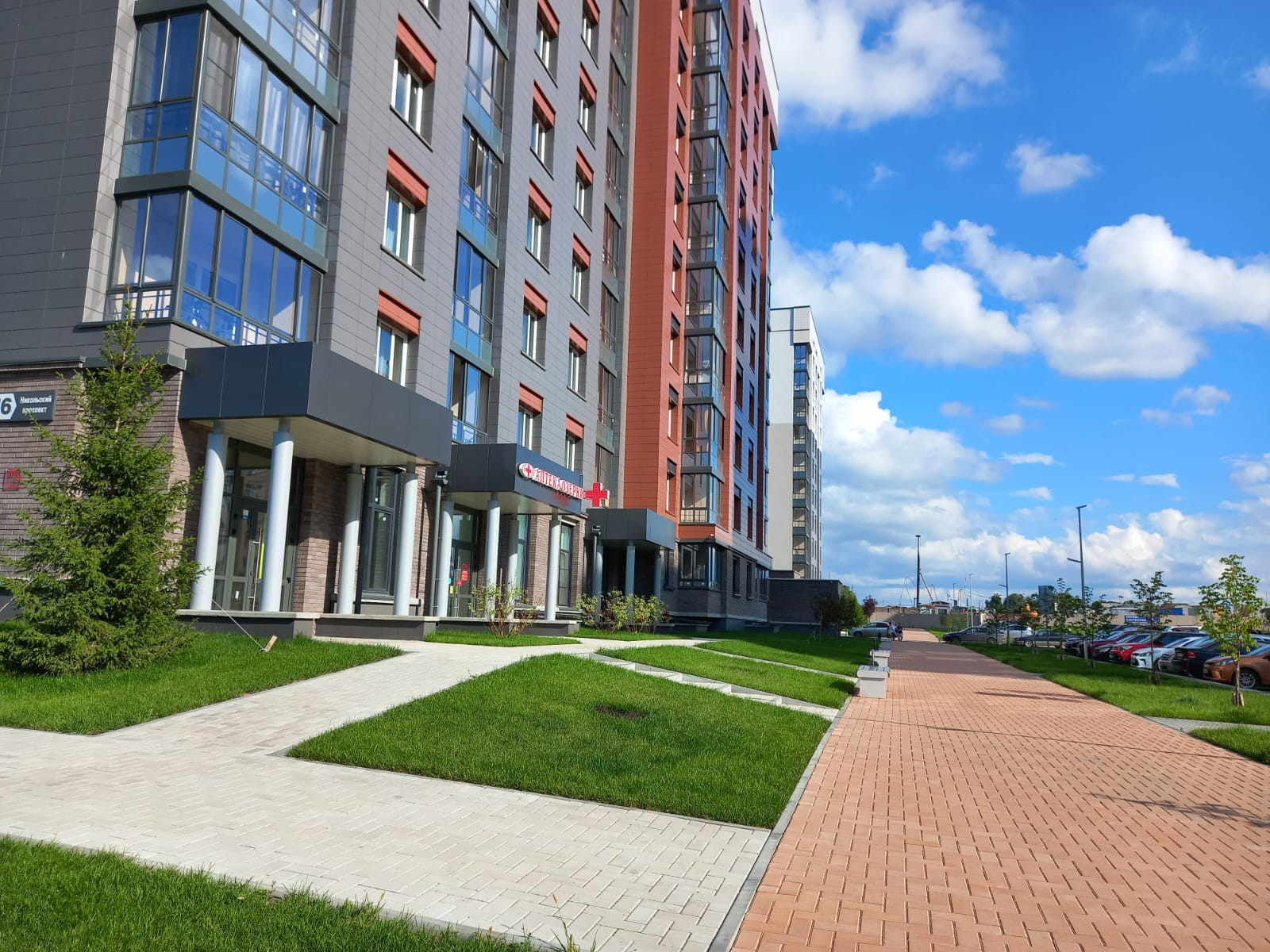 В доме есть подземный паркинг, внутренний двор без парковок закрыт шлагбаумом. Въезд возможен только для разгрузки. Большая парковка за домом.