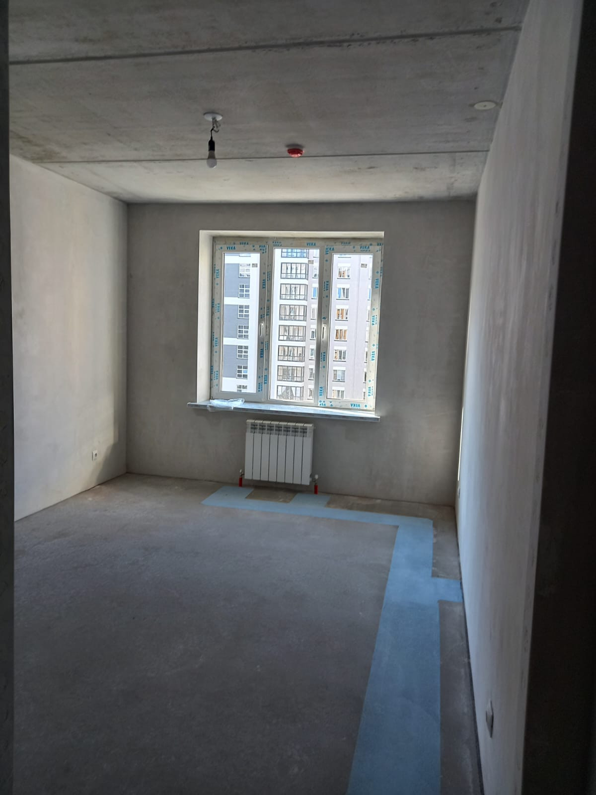 В квартире выполнена предчистовая отделка, установлены качественные пластиковые окна и батареи,