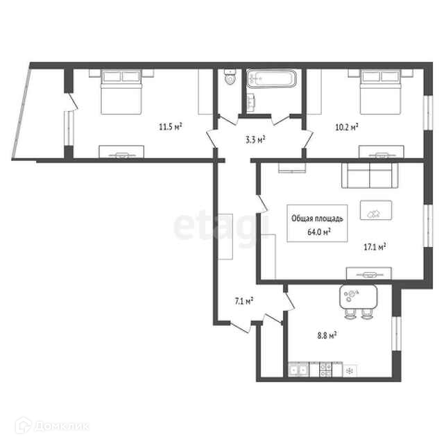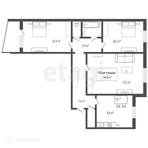 Общая площадь 64 м2