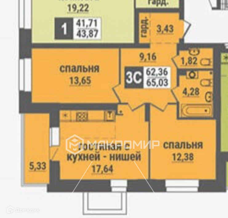 Общая площадь 62.6 м2