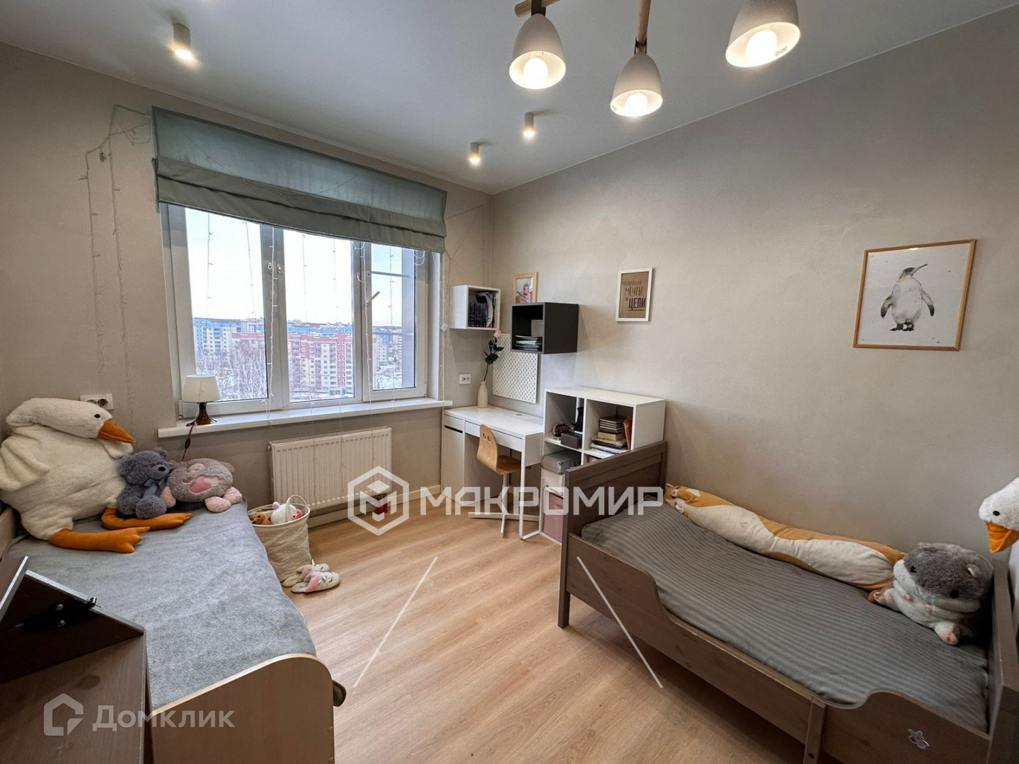 С окон открываются прекрасные виды на лесной массив и придомовую территорию. Юго-западное расположение. Просторная кухня гостиная 18 м2 с выходом на балкон, детская 13,7 м2  и спальней 13,4 м2. Площадь коридора позволяет оборудовать его рабочей зоной или дополнительной гардеробной.