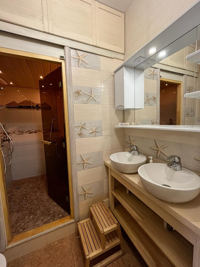 Предлагается к продаже отличная квартира с 3-мя комнатами хорошей площади и вместительной кухней-гостиной. 2 санузла, в одном из которых оборудована сауна, просторная холл-прихожая. Теплые полы. Окна квартиры выходят на 3 стороны света. Остается кухонный гарнитур со встроенной техникой и шкаф-купе в прихожей. Комиссия агентства Покупателем оплачивается дополнительно.