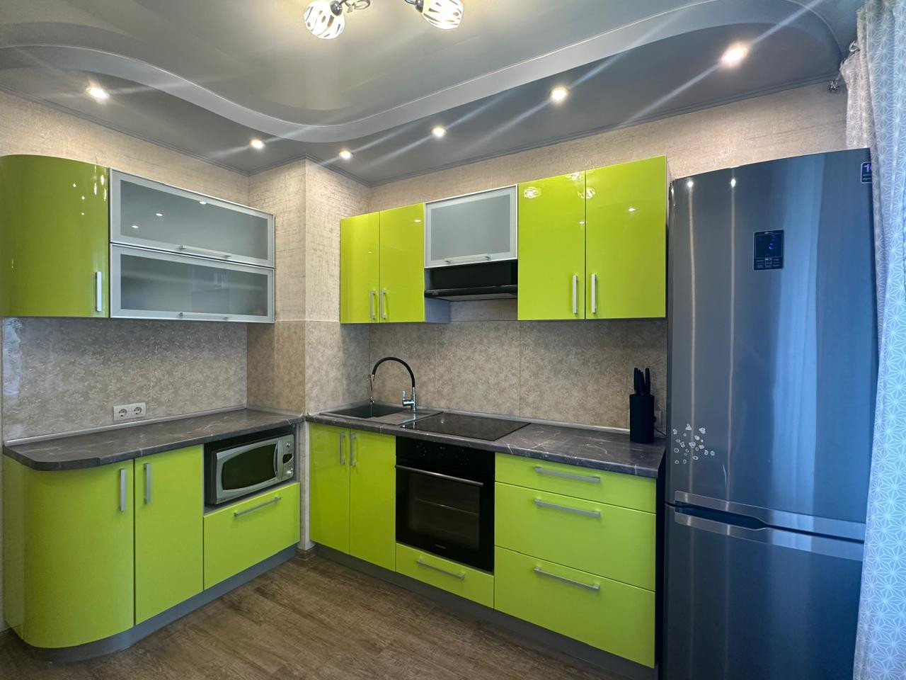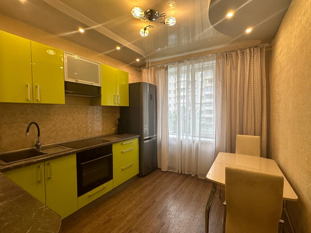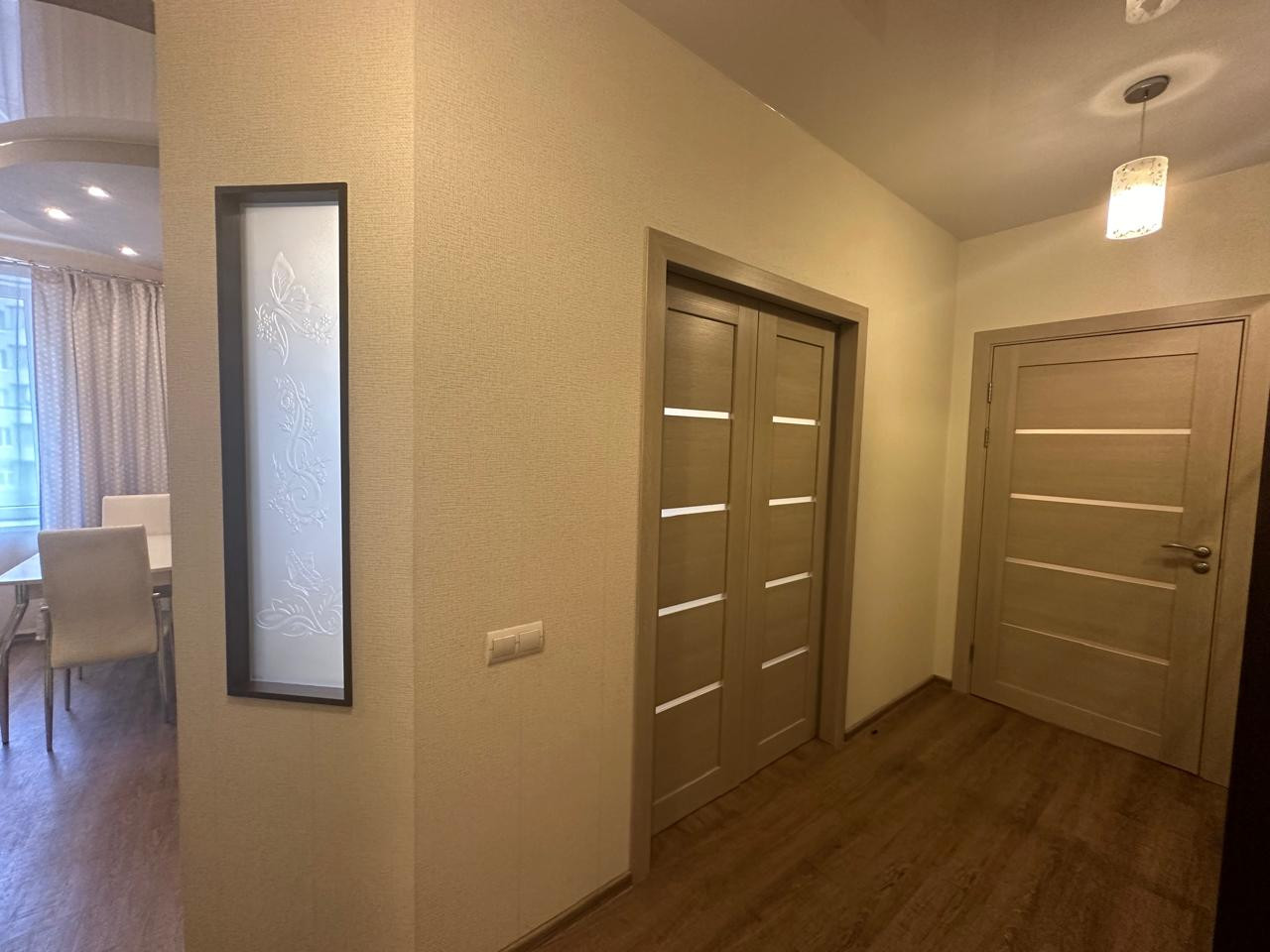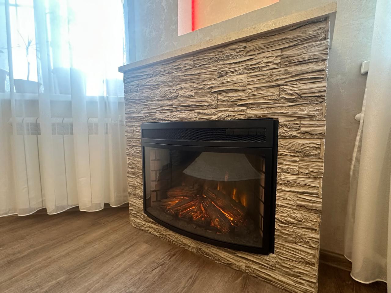 Квартира в отличном состоянии, ничего делать не нужно, "ЗАХОДИ и ЖИВИ". Ремонт делали для себя,все продумано, много дополнительного света. Дополняет интерьер гостиной электрокамин, который можно использовать и как элемент декора, а можно и обогреть комнату. В санузле сделан теплый пол, эксклюзивное зеркало на заказ во всю комнату, столешница под камень.