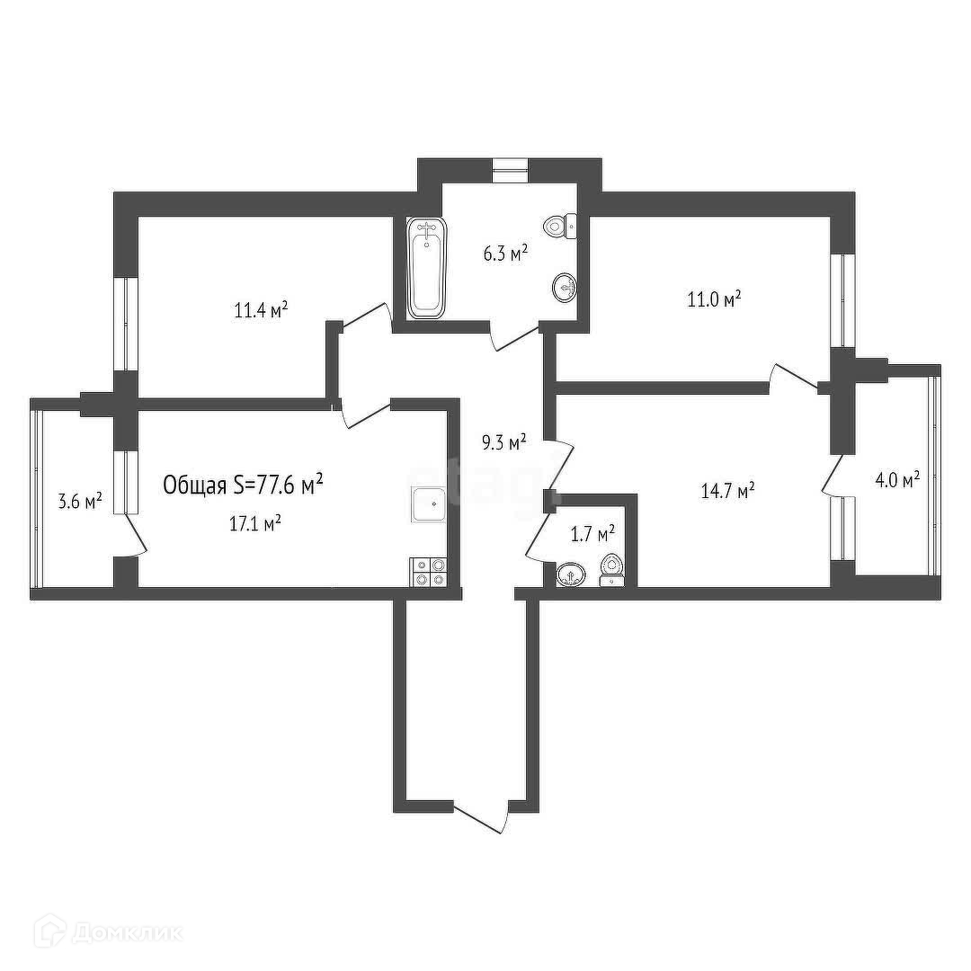 Общая площадь 77.6 м2