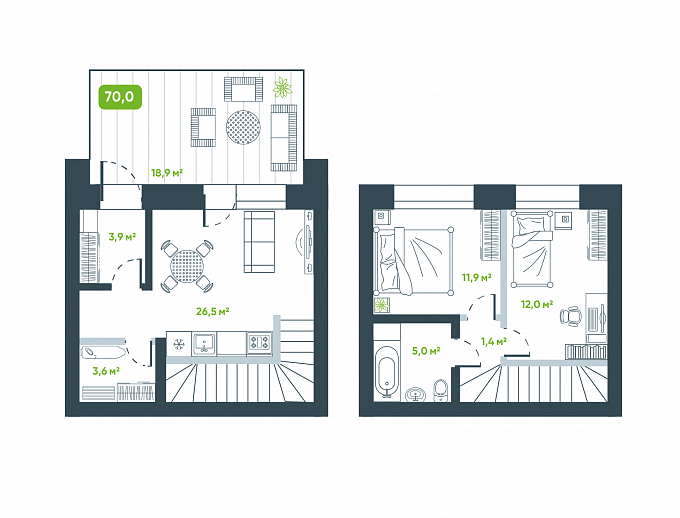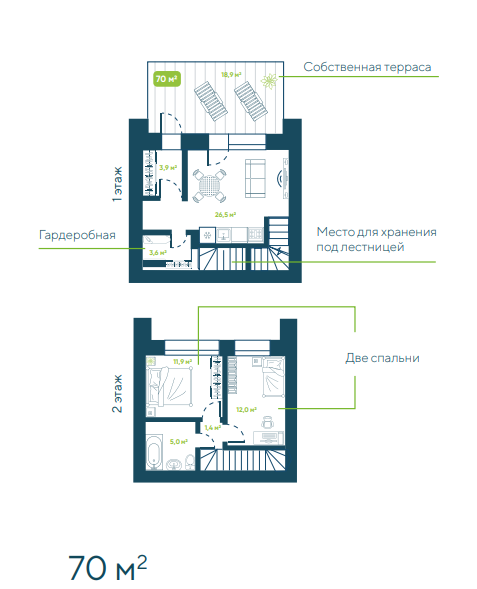 Общая площадь 70 м2