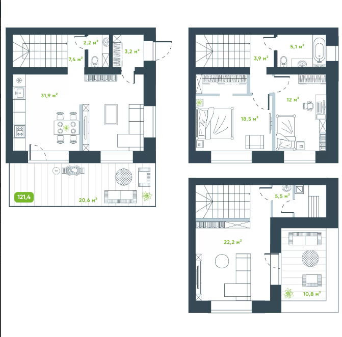 Общая площадь 121.4 м2