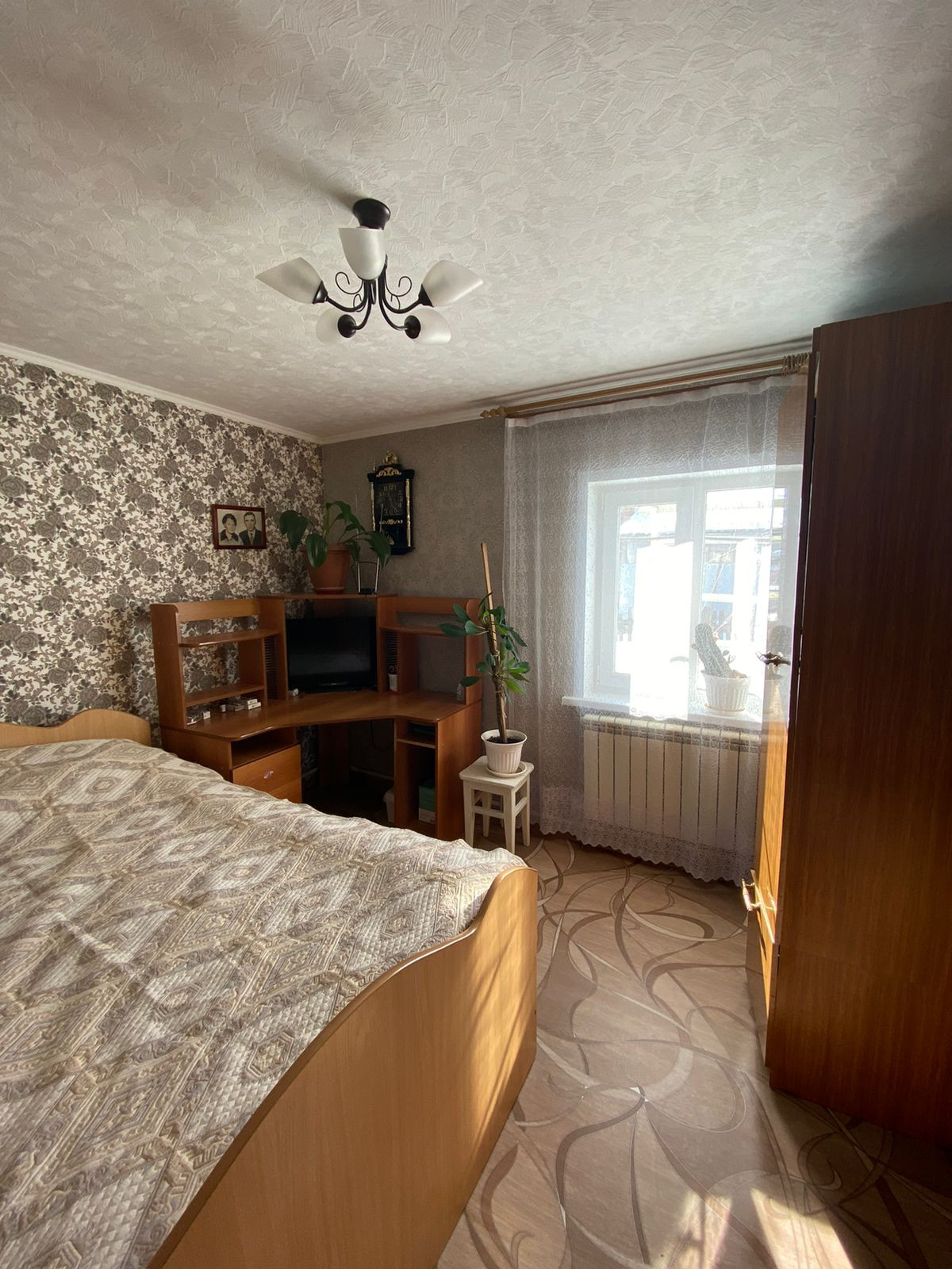 Продам благоустроенный дом.Стены дома с улицы утеплённые и обшиты сайдингом блок хаус.В доме- 3 спальни,большой зал.В доме стены,потолки,пол выровнены.Во всем доме вставленны пластиковые окна (3стеклопакета).В зале натяжной потолок.Во всем доме постелен линолеум.Туалет с ванной совмещённый,стоит унитаз,душевая кабина,,раковина с тумбой,навесной шкаф с зеркалом,тёплый пол и положила плитка,полотенцесушитель.В доме индивидуальное отопление,навесной 2 контурный котёл,соответственно горячая вода всегда в наличии,и отпадает надобность в колонке.Централизованная система холодного водоснабжения.На кухни остаётся кухонный уголок,дорогая мойка,дорогой смеситель,,фильтр для питьевой воды под мойку,дорогая комбинированная плита(с конвенцией).В доме есть интернет,интернет провайдер Ростелеком.К дому пристроена веранда из пеноблока.На участки 2 выгребные ямы (одна для туалета,другая для кухни).Участок огорожен профлистом.Участок облагороженный чернозём.На участке большая теплица.Сарай с погребом,погреб сухой,вода не поступает.Сарай для хранения инвентаря.Есть туалет на участке.Имеется гараж из сендвич панелей,ворота железные.На участки много цветов,ягод-малин,виктория 2видов,смородина жёлтая,красная, чёрная,виноград 2 видов и многое другое.Реальному покупателю торг.