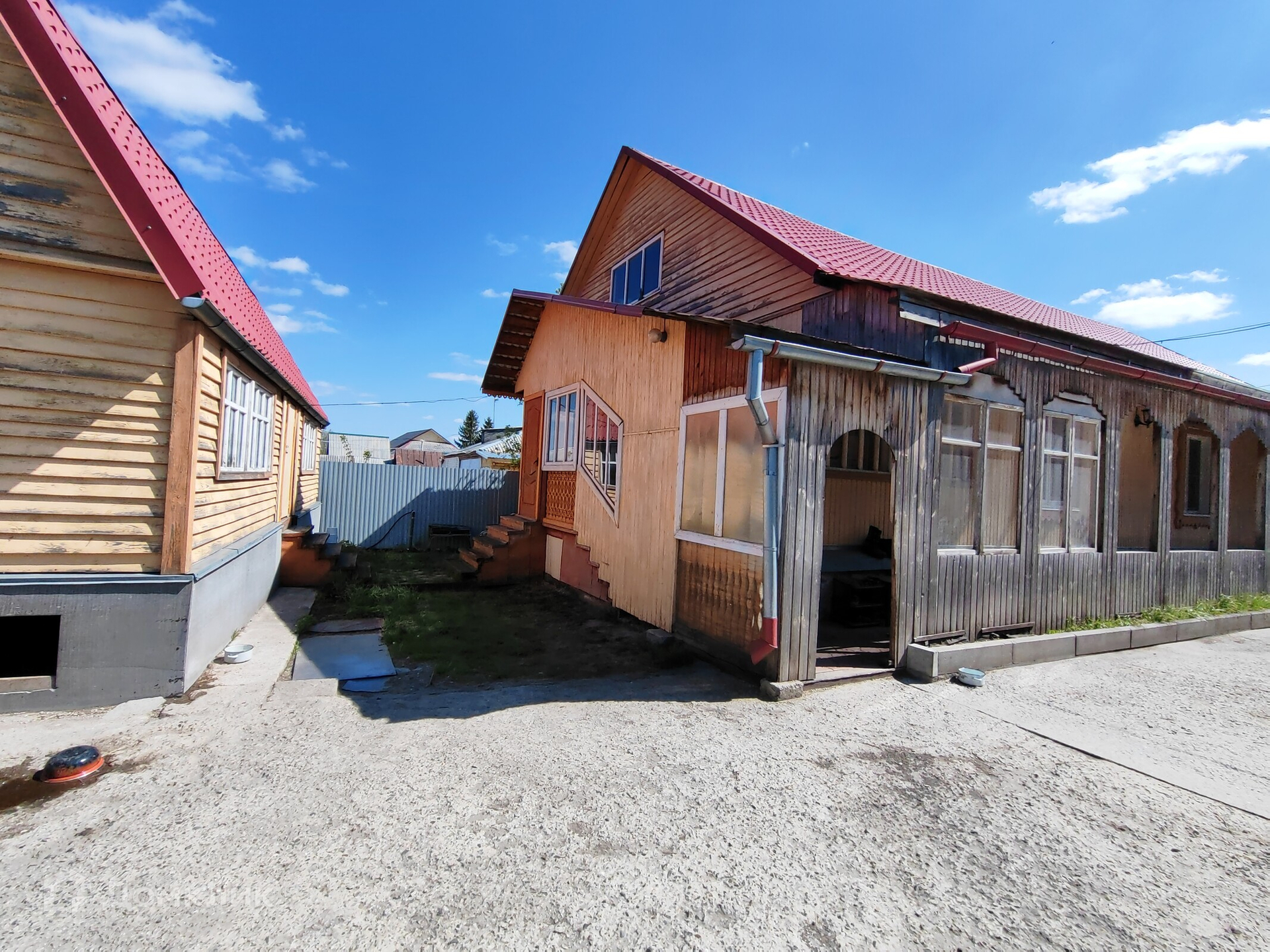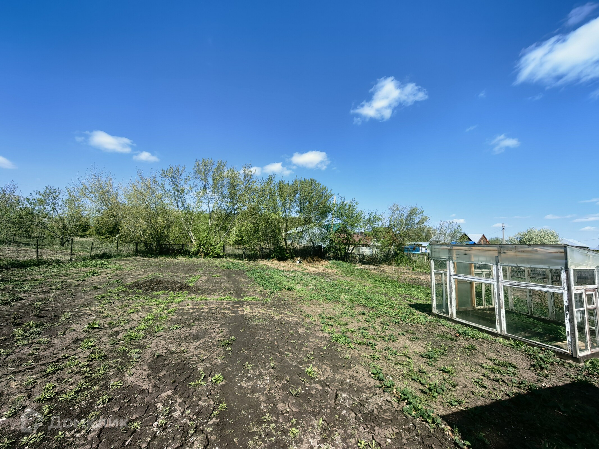 Огород большой, ровный, не топит, подполье всегда сухое. Есть две деревянные теплицы. Из посадок, клубника, вишня, малина, смородина, облепиха.