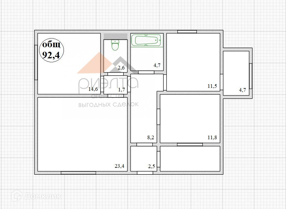 Общая площадь 92.4 м2