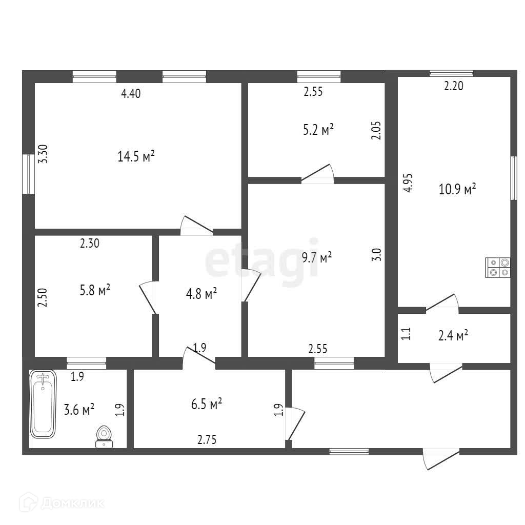 1-этажный дом, 63.4 м2, на продажу в рабочем посёлке Комсомольском