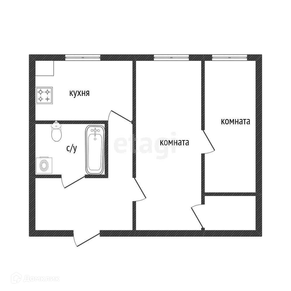 2-комнатная квартира, 44 м2, этаж 1 / 4, на продажу в рабочем посёлке Константиновском, улица Ленина, 15