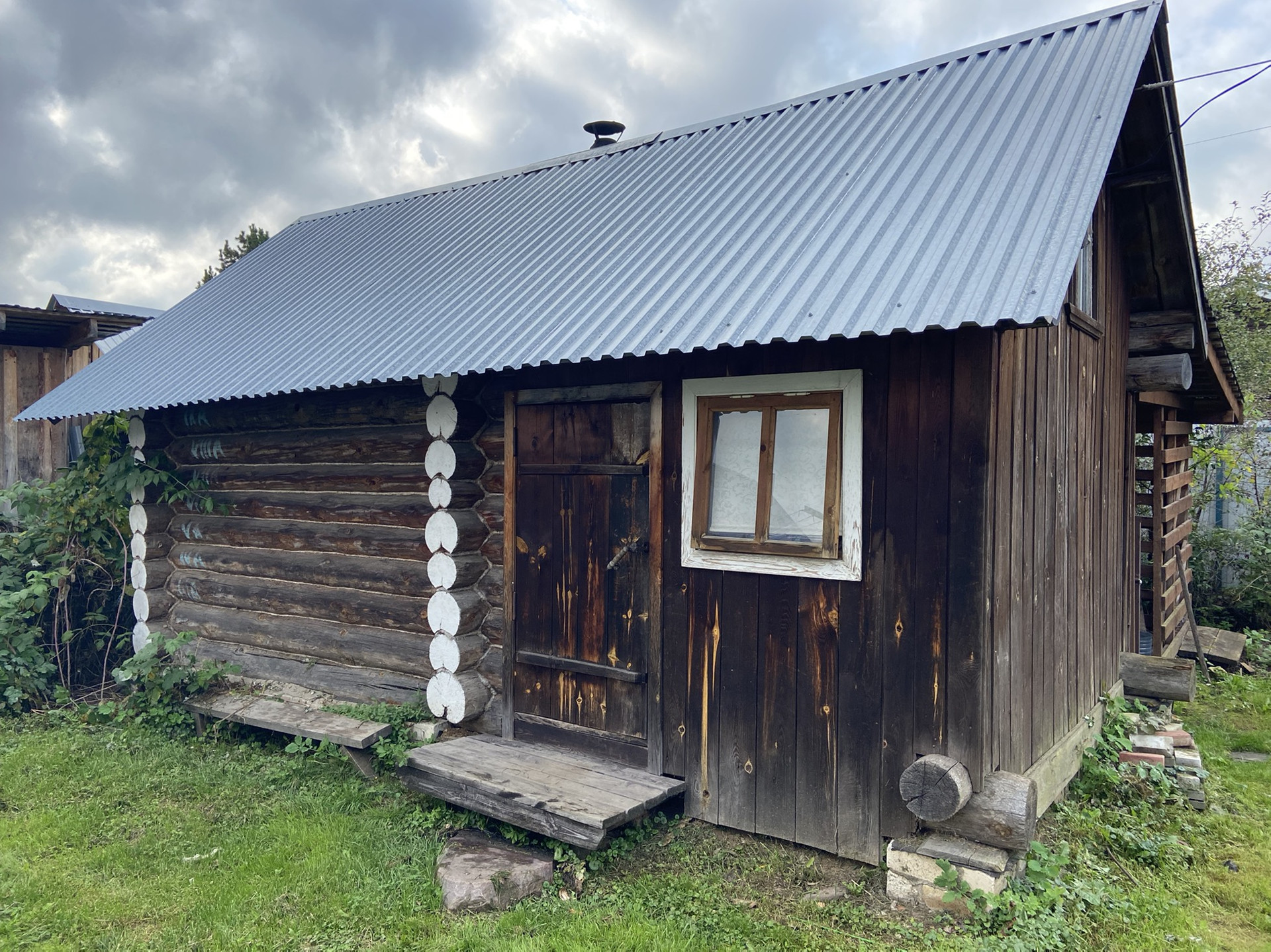 На территории участка рубленая баня ,одноместный гараж с автоматическими воротами,огород и хоз.постройки.