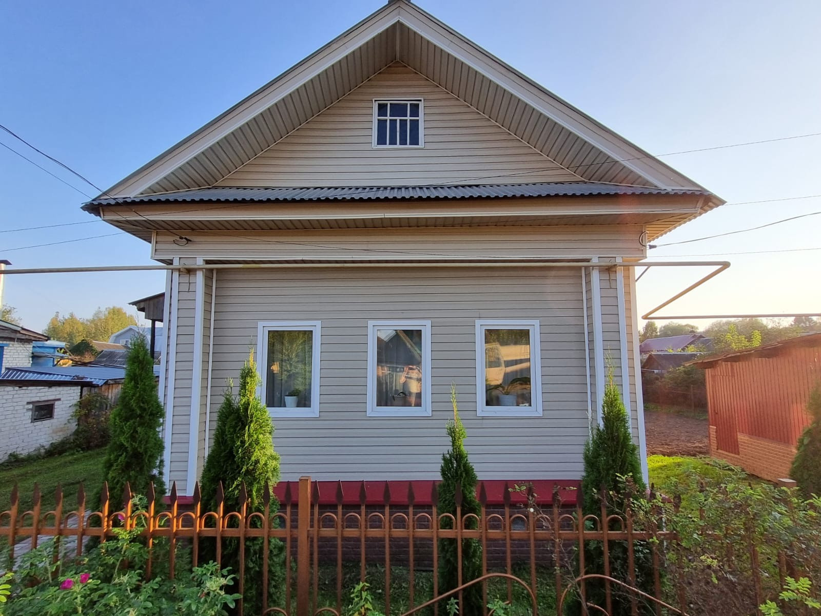 Дом деревянный,обшитый сайдингом,пристрой-кирпичный. Пригоден для круглогодичного проживания.