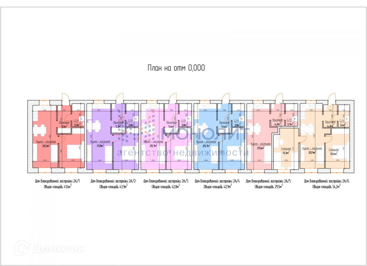 Дом состоит из 6-ти секций. Площадь данной секции 41.6 м2. Собственный земельный участок 2 сот. За секцией закреплены 2 парковочных места. Все подъездные пути и парковка асфальтированные. Так же есть секции большей и меньшей площади (2 комнатные и студии).