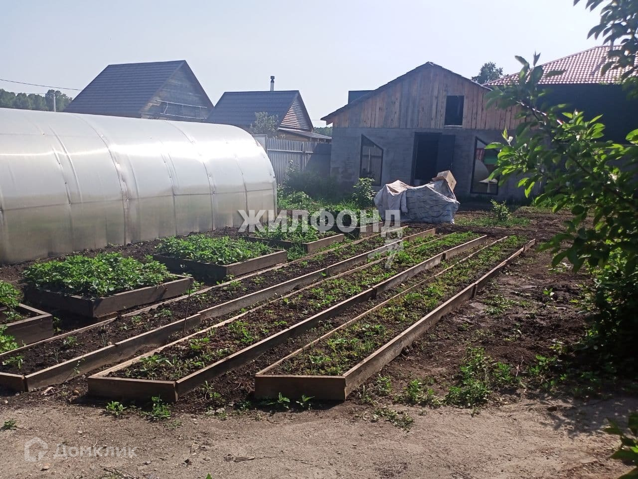 Уже имеются и не один год растут и приносят плоды: яблоня, вишня, ремонтантная малина, плантация клубники и т.д. Установлена и функционирует большая теплица 3*8м.
