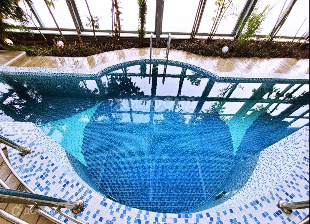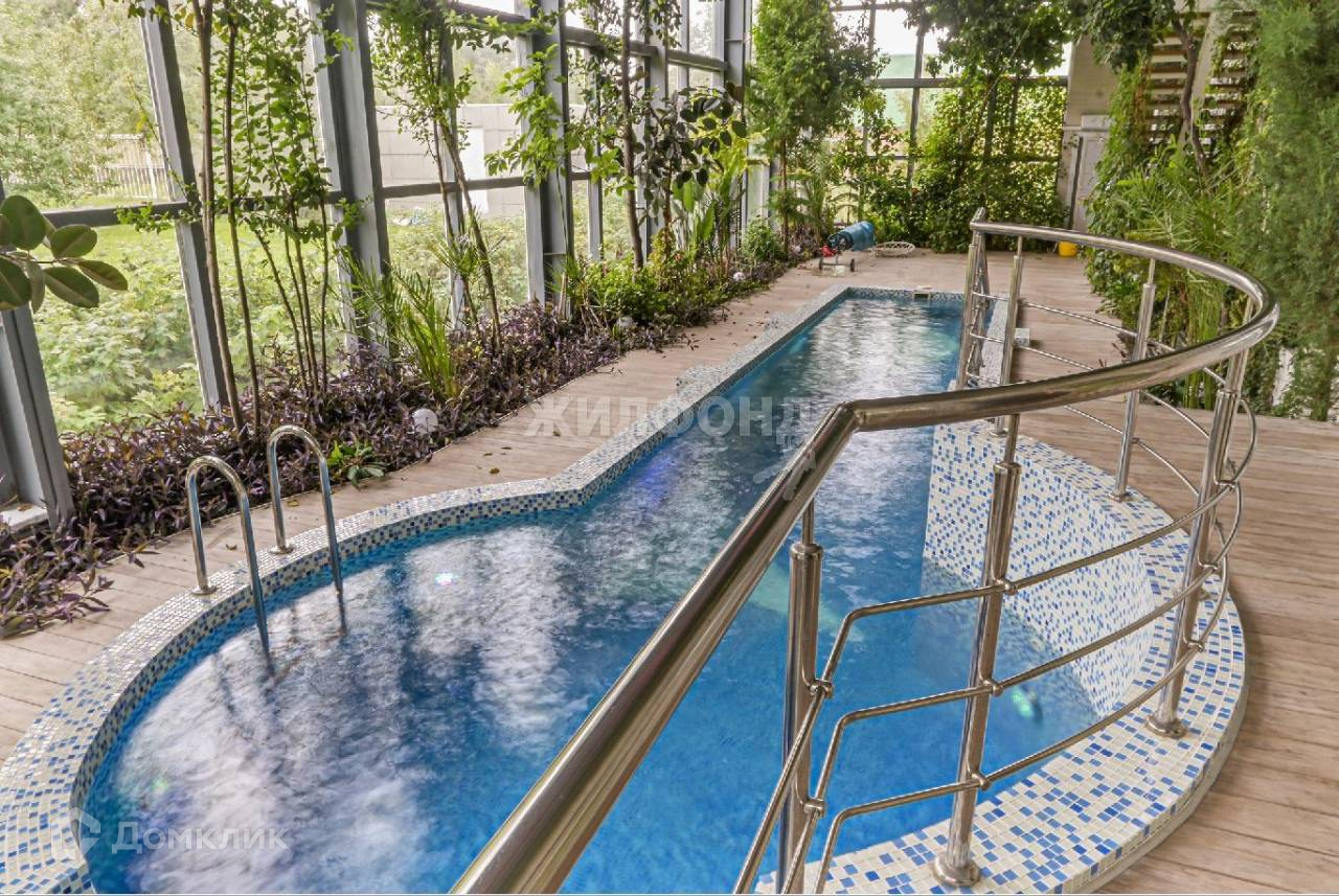 Центральное место - просторный зимний сад с вечнозелёными растениями и полноценным 14ти метровым бассейном и сауной, что позволяет ощутить атмосферу курорта, даже в сильные сибирские морозы.