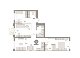 3-ком. квартира на продажу, 84.4 м2, 3-й микрорайон, 12А
