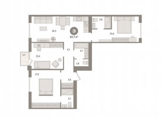 3-комнатная квартира на продажу, 92.7 м2