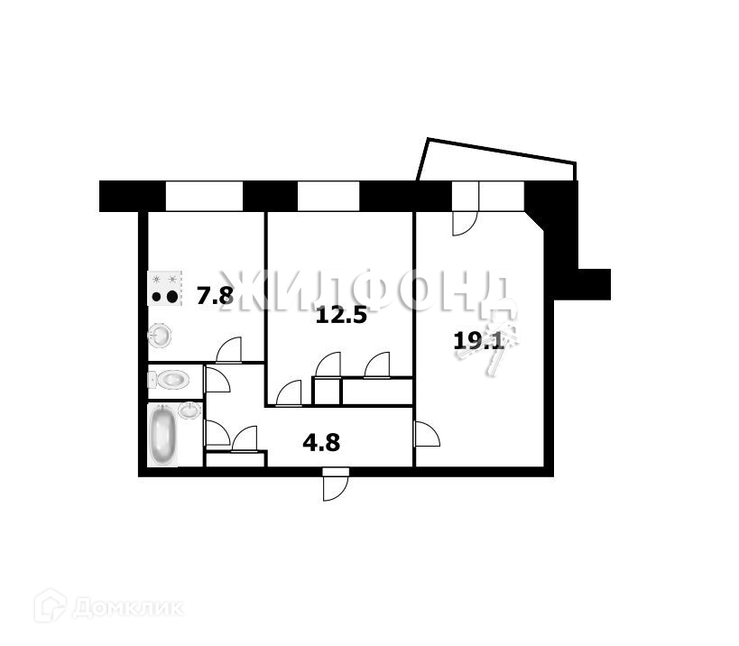 Жилая площадь 31.6 м2